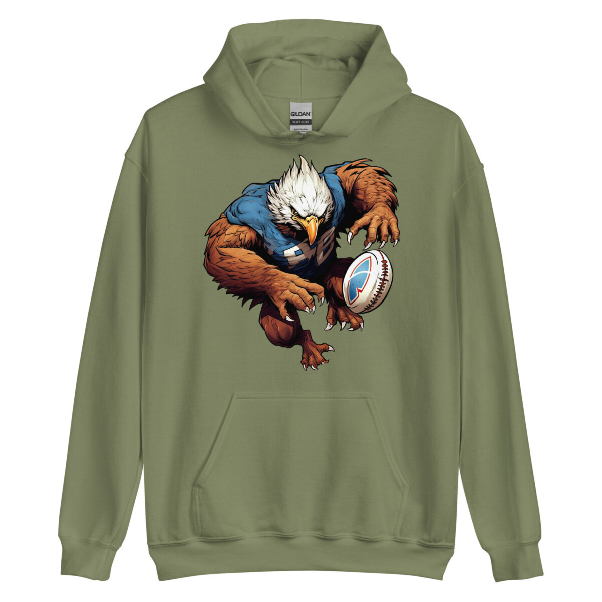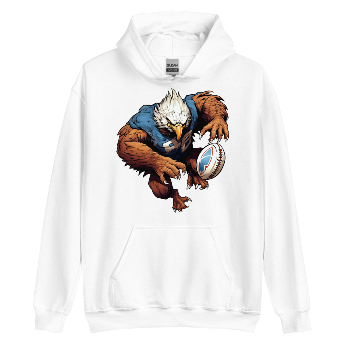 Dieser coole Kapuzenpulli rückt den Adler beim Rugby direkt ins Zentrum deines Outfits. Ein stilvoller Look für alle, die ihre sportliche Leidenschaft mit einer Prise Eleganz und schicken Akzenten krönen möchten.