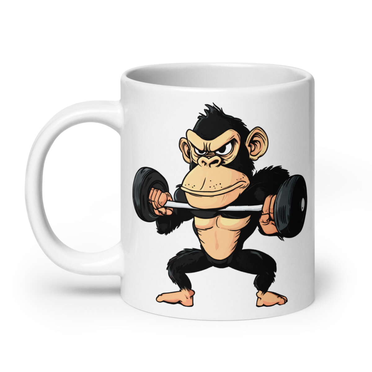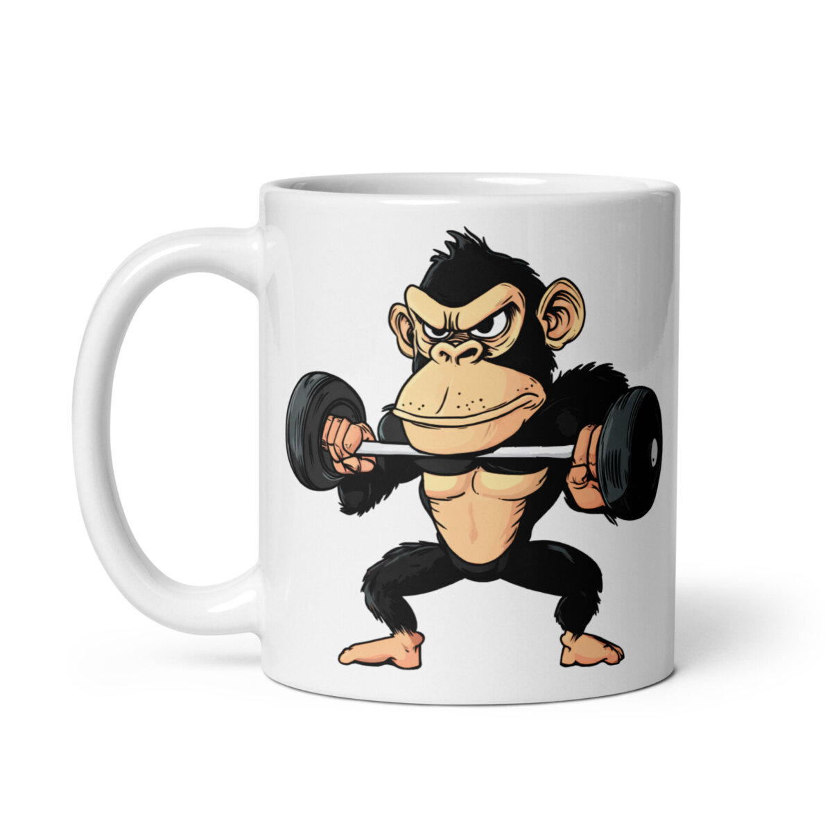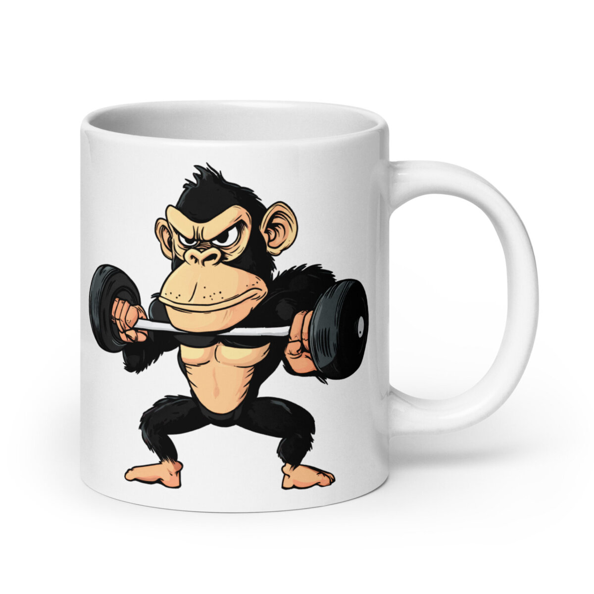 Wer braucht schon einen Personal Trainer, wenn man diesen Affen an der Hantel sieht? Mit dieser schwarzen Tasse und dem motivierten Kraftsport-Motiv zeigst du jedem, dass tierischer Humor und hartes Training ein unschlagbares Team sind. Ob Morgenkaffee, heisse Schokolade oder für einen Tee: Diese schöne Tasse ist immer die richtige Wahl. Aus robustem Keramik gefertigt und mit einem glänzenden Fitness Druck versehen, überzeugt sie mit einem coolen Fitness Affe Style, der auch nach vielen Spülgängen strahlend bleibt. Für Mikrowellen und Spülmaschinen geeignet. Ein echter Hingucker und ein cooles Geschenk für alle Fitness und Affen Fans.