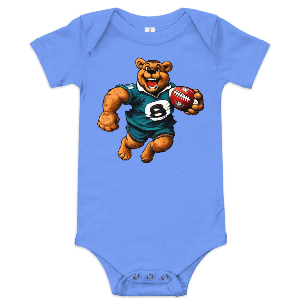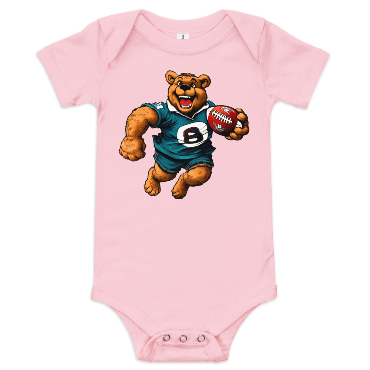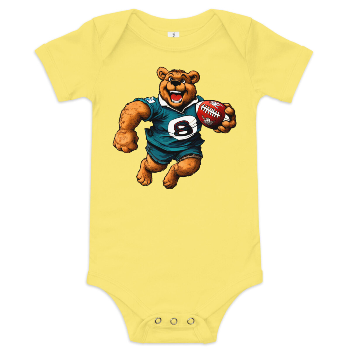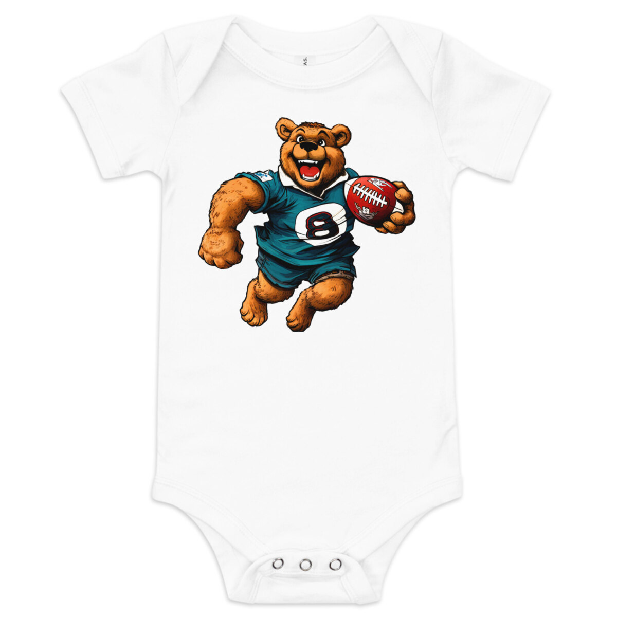 Zieh dein Baby im Rugby Stil an – in diesem bezaubernden Baby-Body aus Baumwolle. Die drei Druckknöpfe im Schritt sorgen für einfaches Wickeln und bequemes An- und Ausziehen. Das weiche Material schmiegt sich sanft an empfindliche Babyhaut, während der liebevolle Rugby Bär Druck garantiert für Lächeln, Kichern und jede Menge lustige Momente sorgt. Ideal für den Alltag oder besondere Schnappschüsse für Fans von Bären und Rugby.