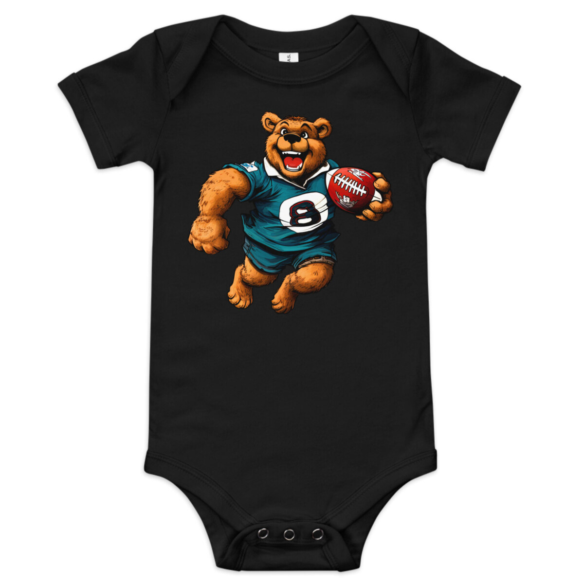 Wer sagt, dass man für ein ordentliches Tackle schon laufen können muss? Dieser Babybody schickt den Bären mit dem Rugby-Ei direkt auf die Spielmatte. Ein bärenstarker Look für kleine Talente, die schon jetzt zeigen, dass sie sich den Ball (oder die Rassel) von niemandem abnehmen lassen. 🐻🏉