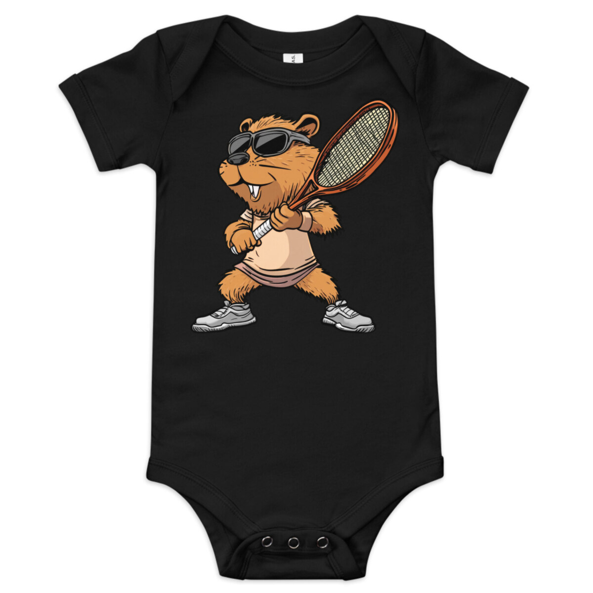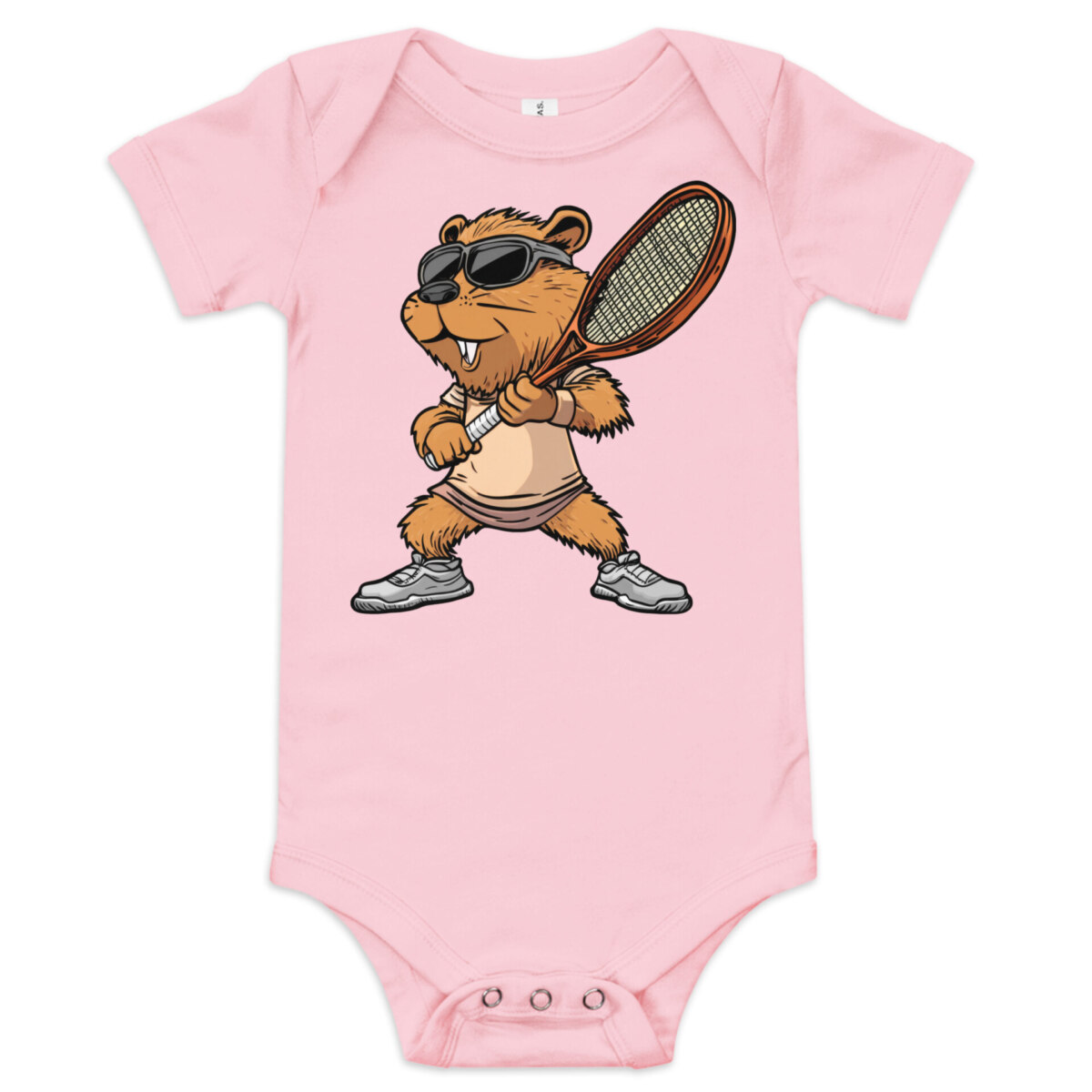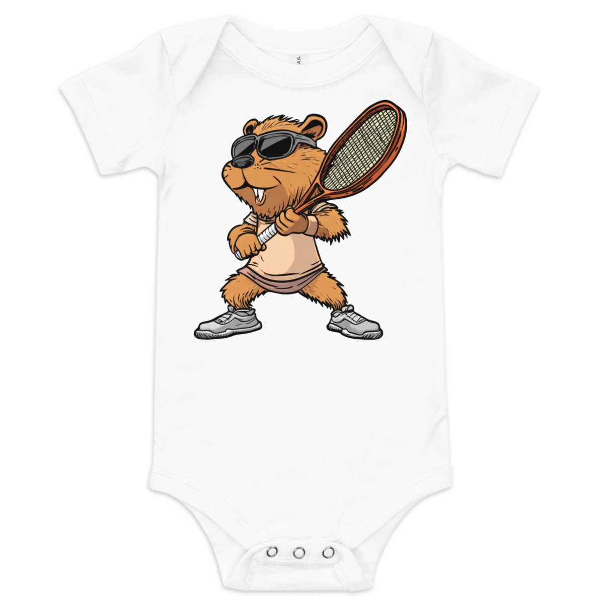 Zieh dein Baby im Tennis Stil an – in diesem bezaubernden Baby-Body aus Baumwolle. Die drei Druckknöpfe im Schritt sorgen für einfaches Wickeln und bequemes An- und Ausziehen. Das weiche Material schmiegt sich sanft an empfindliche Babyhaut, während der liebevolle Tennis Biber Druck garantiert für Lächeln, Kichern und jede Menge lustige Momente sorgt. Ideal für den Alltag oder besondere Schnappschüsse für Fans von Biber und Tennis.