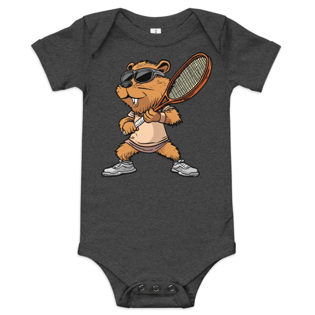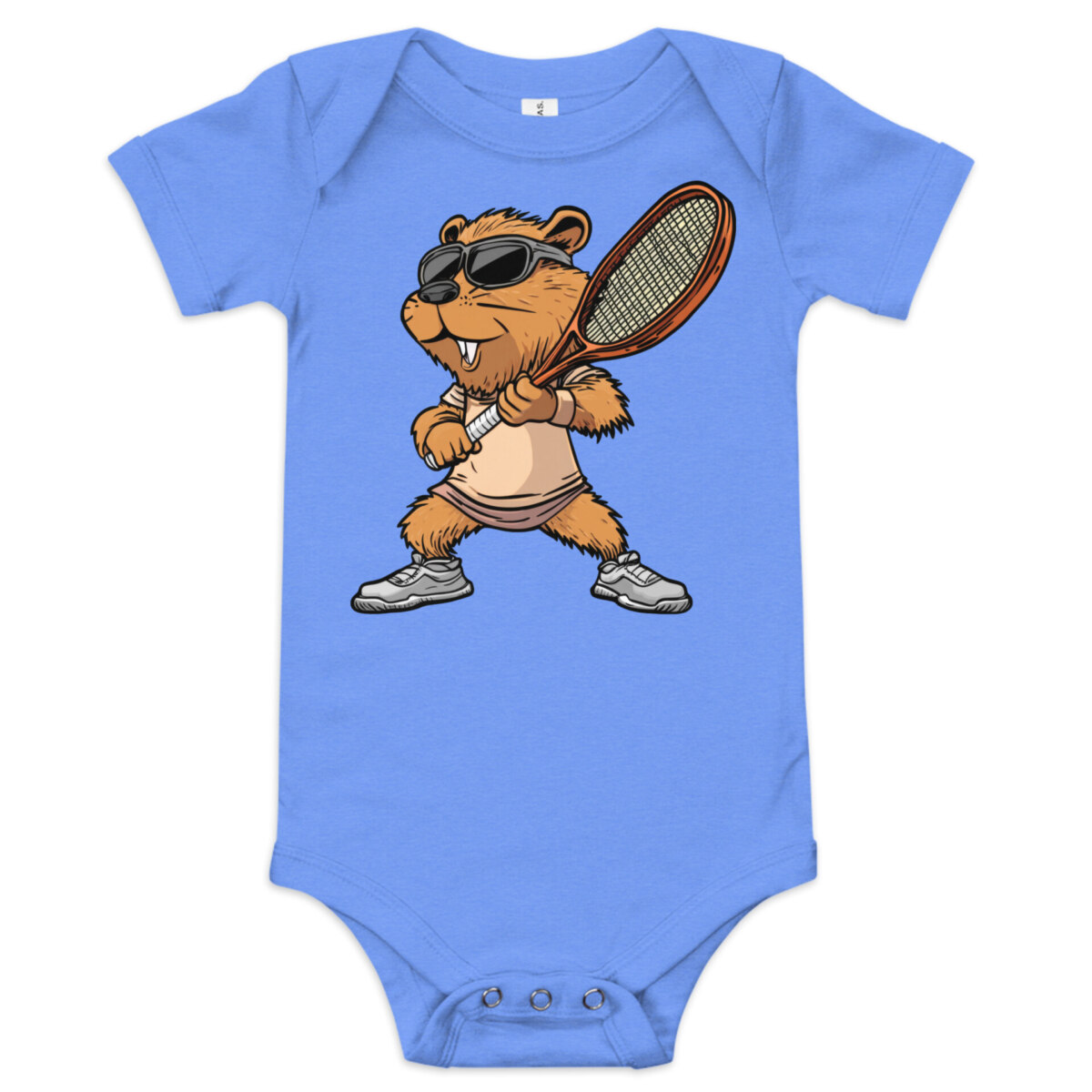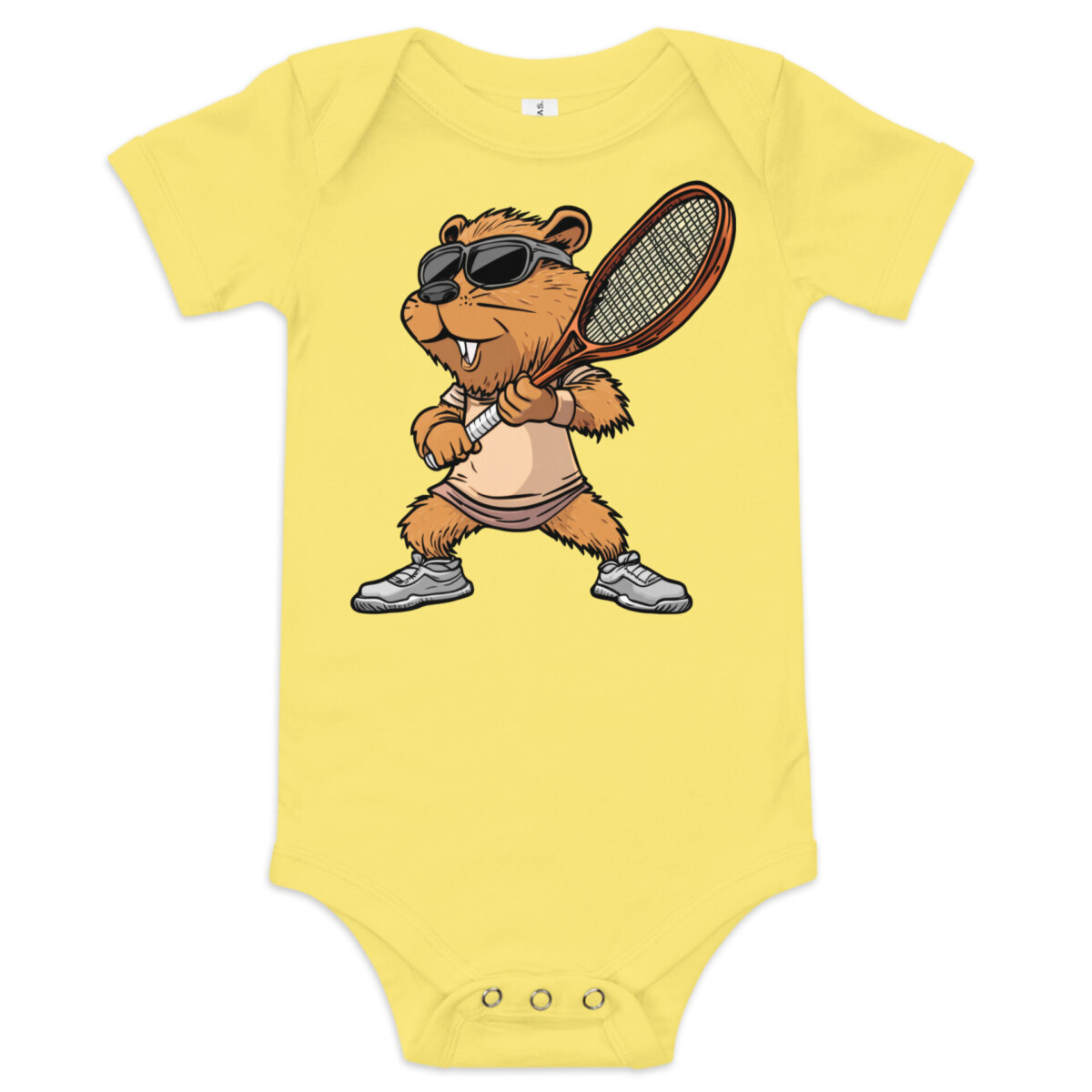 Zieh dein Baby im Tennis Stil an – in diesem bezaubernden Baby-Body aus Baumwolle. Die drei Druckknöpfe im Schritt sorgen für einfaches Wickeln und bequemes An- und Ausziehen. Das weiche Material schmiegt sich sanft an empfindliche Babyhaut, während der liebevolle Tennis Biber Druck garantiert für Lächeln, Kichern und jede Menge lustige Momente sorgt. Ideal für den Alltag oder besondere Schnappschüsse für Fans von Biber und Tennis.