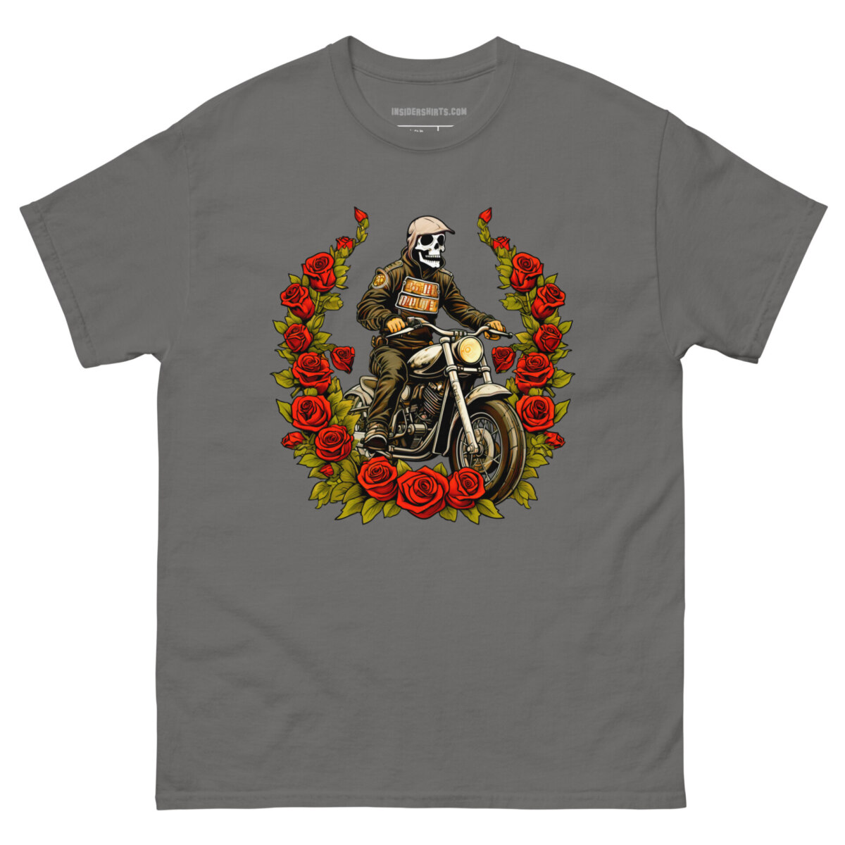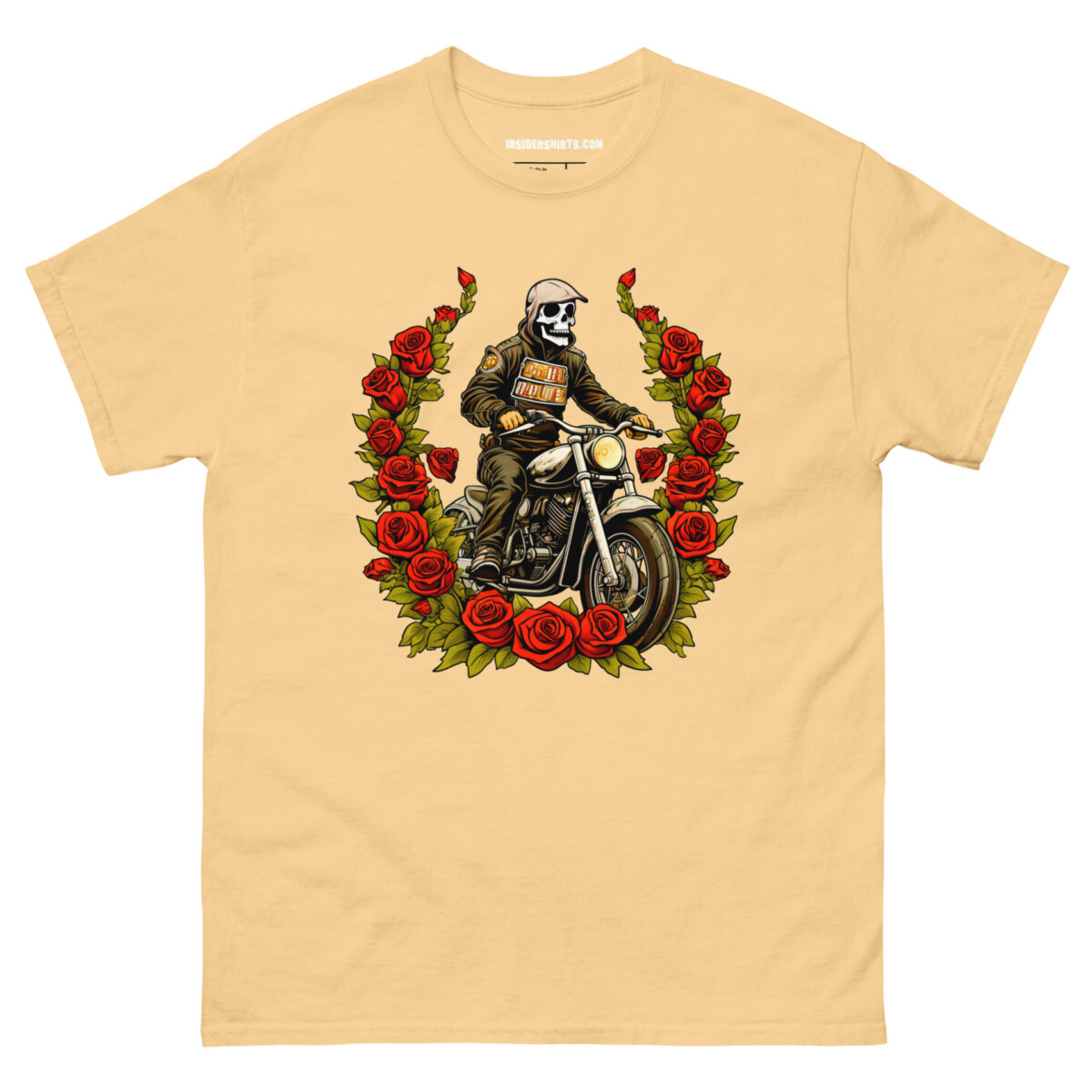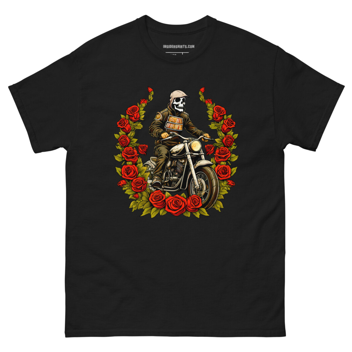 Vergiss Standard-Logos ā hier kommt ein Design mit Seele. Wenn der Born to Ride Schriftzug auf das Motorrad und die Rosen trifft, bekommt dein Outfit sofort eine tiefere Bedeutung. Ein unkompliziertes Teil für deine Garderobe, das Charakter zeigt und garantiert nicht an jeder Strassenecke zu sehen ist. š