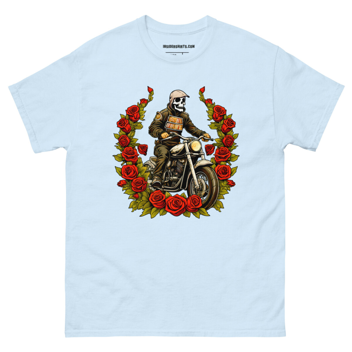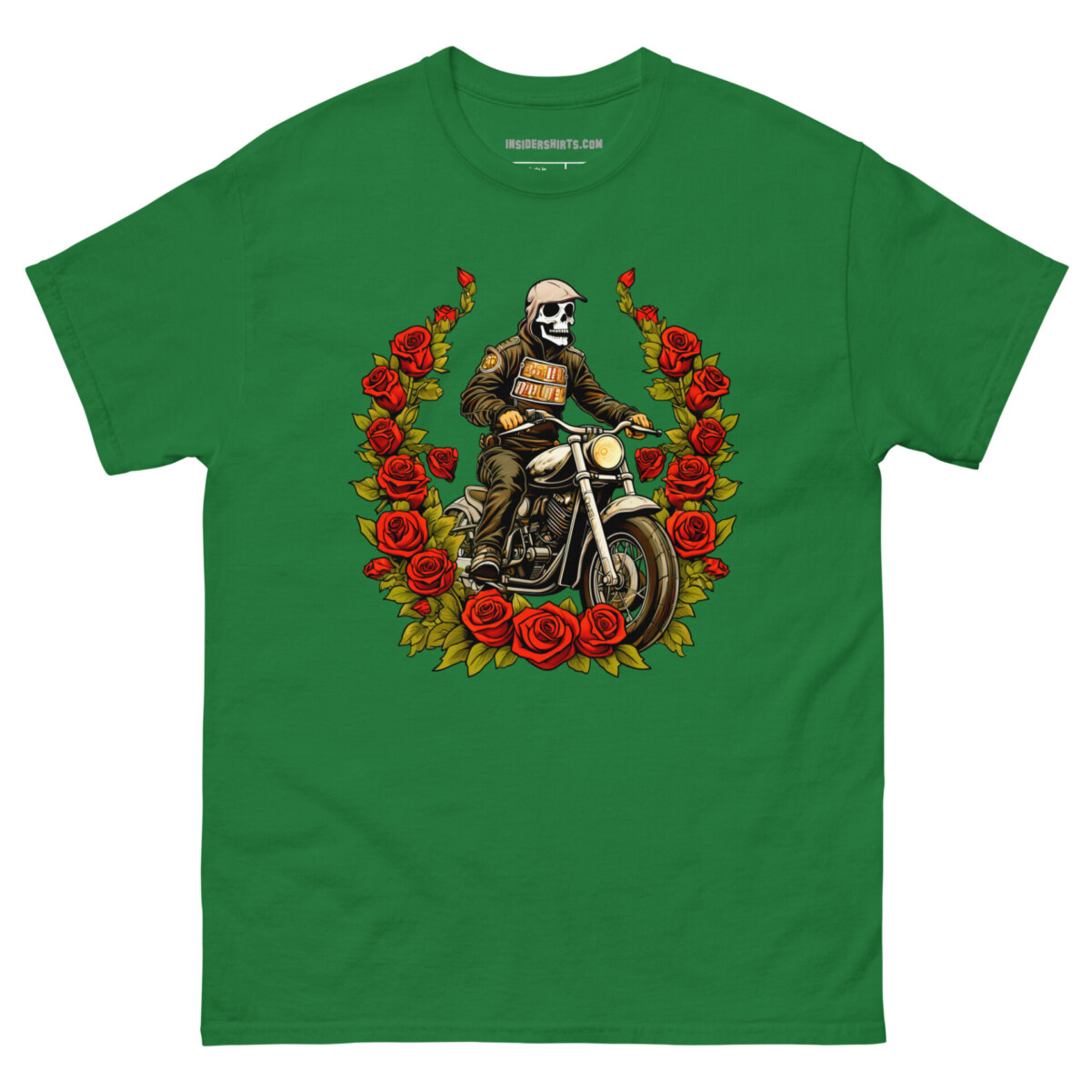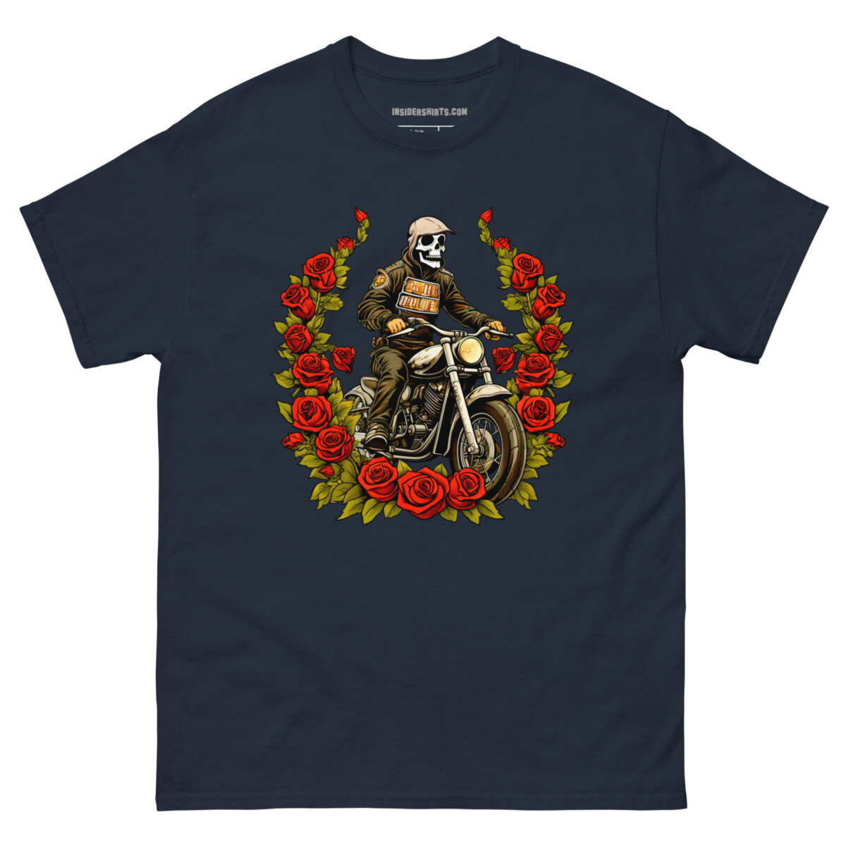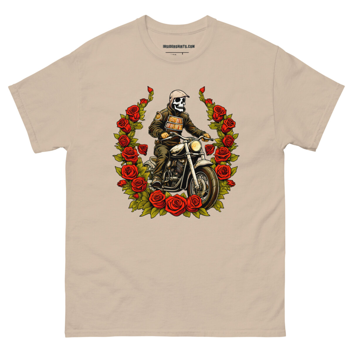 Vergiss Standard-Logos ā hier kommt ein Design mit Seele. Wenn der Born to Ride Schriftzug auf das Motorrad und die Rosen trifft, bekommt dein Outfit sofort eine tiefere Bedeutung. Ein unkompliziertes Teil für deine Garderobe, das Charakter zeigt und garantiert nicht an jeder Strassenecke zu sehen ist. š