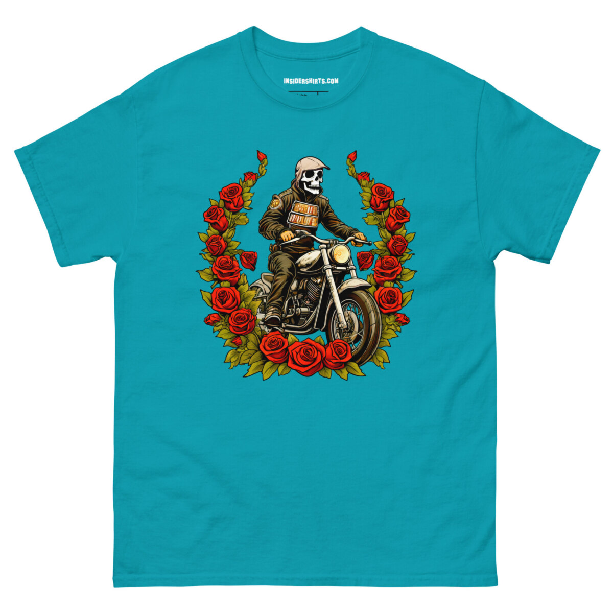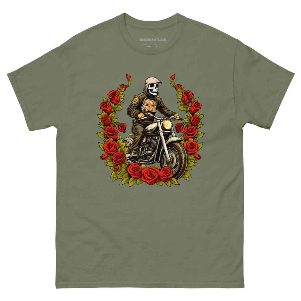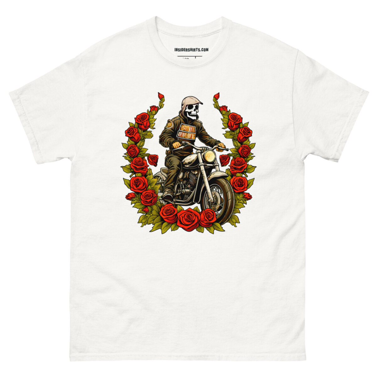 Dieses coole Motorrad MƤnner T-Shirt aus Baumwolle verleiht deinem Outfit einen stylischen und strukturierten Motorrad Look ā ganz ohne Aufwand. Es sitzt perfekt, bleibt formstabil und lƤsst sich ideal mit Jeans, Jacken oder in Motorrad Streetwear Outfits kombinieren. Der auffƤllige, coole Motorrad Skelett Druck setzt ein klares Statement ā ein Must-have für alle MƤnner, die es lƤssig und stilvoll mƶgen.