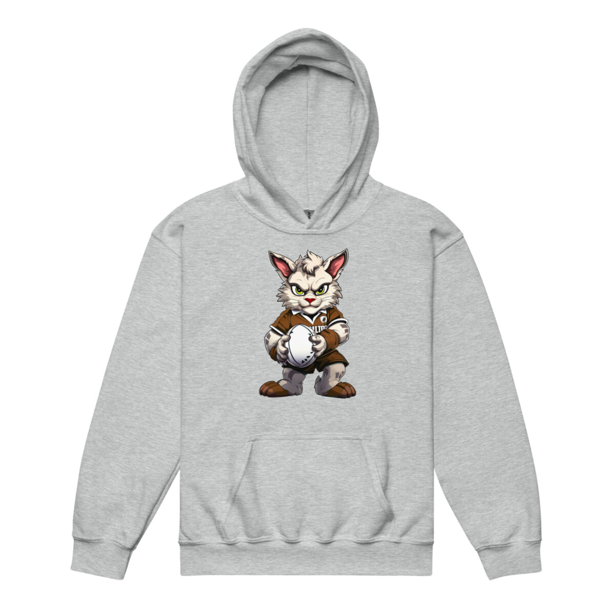 Wer schnappt sich den Ball? Sichere dir den coolen Kinder Kapuzenpulli mit der Katze als Rugby-Profi für tierisch guten Style. Bereit für jedes Abenteuer: Dieser strapazierfähige Rugby Kinder-Hoodie ist der ultimative Begleiter für kleine Abenteurer. Gefertigt aus einem atmungsaktiven Baumwoll-Mix, hält er jedem Move beim Rugby stand. Dank der doppelt gefütterten Kapuze und der praktischen Kängurutasche ist er perfekt für aktive Kids gerüstet. Besonders clever: Der Verzicht auf Kordelzüge sorgt für maximale Sicherheit, während die robusten Doppelnähte selbst wildeste Katzen bändigen. Ein echtes Must-have für das Revier kleiner Rugby Katzen Fans!
