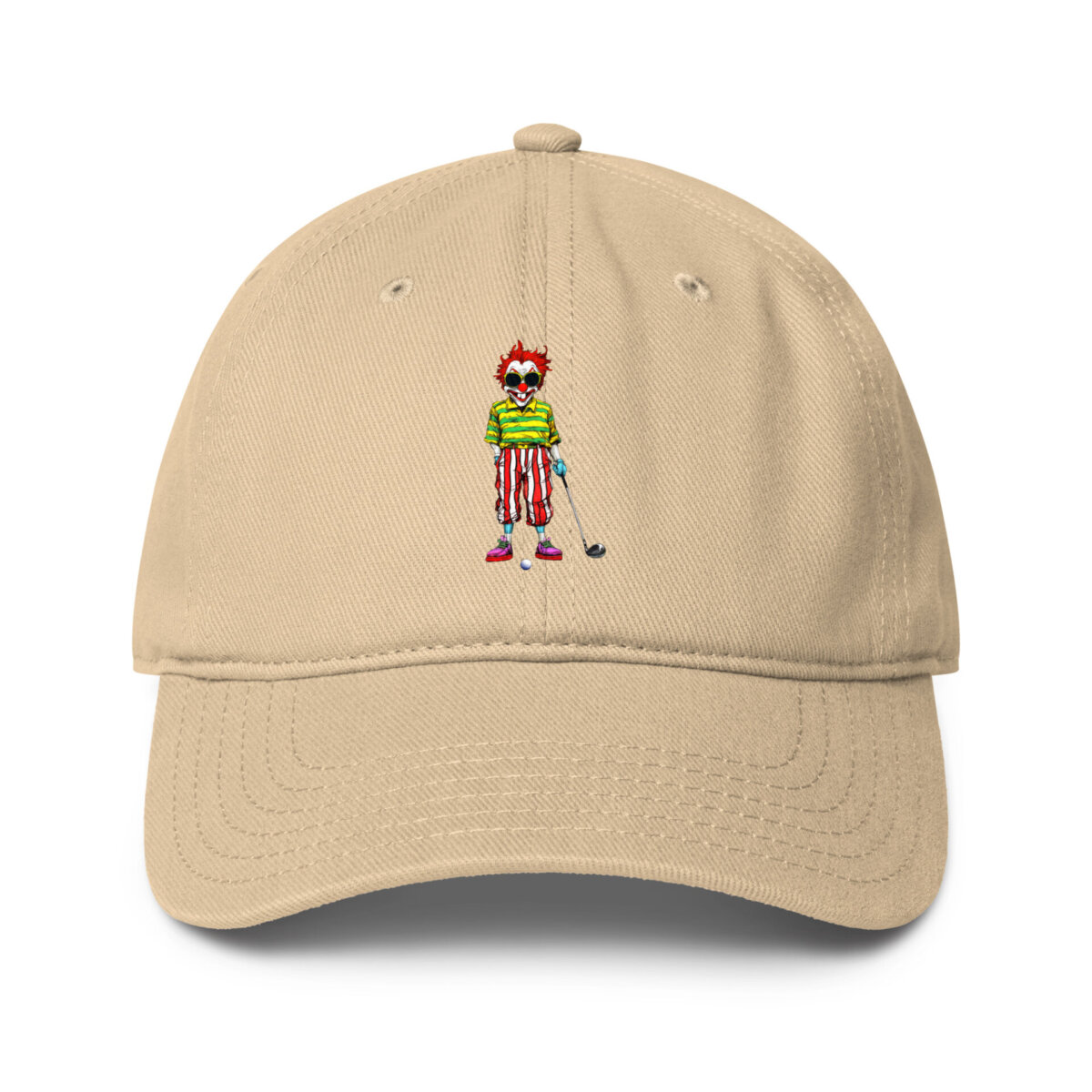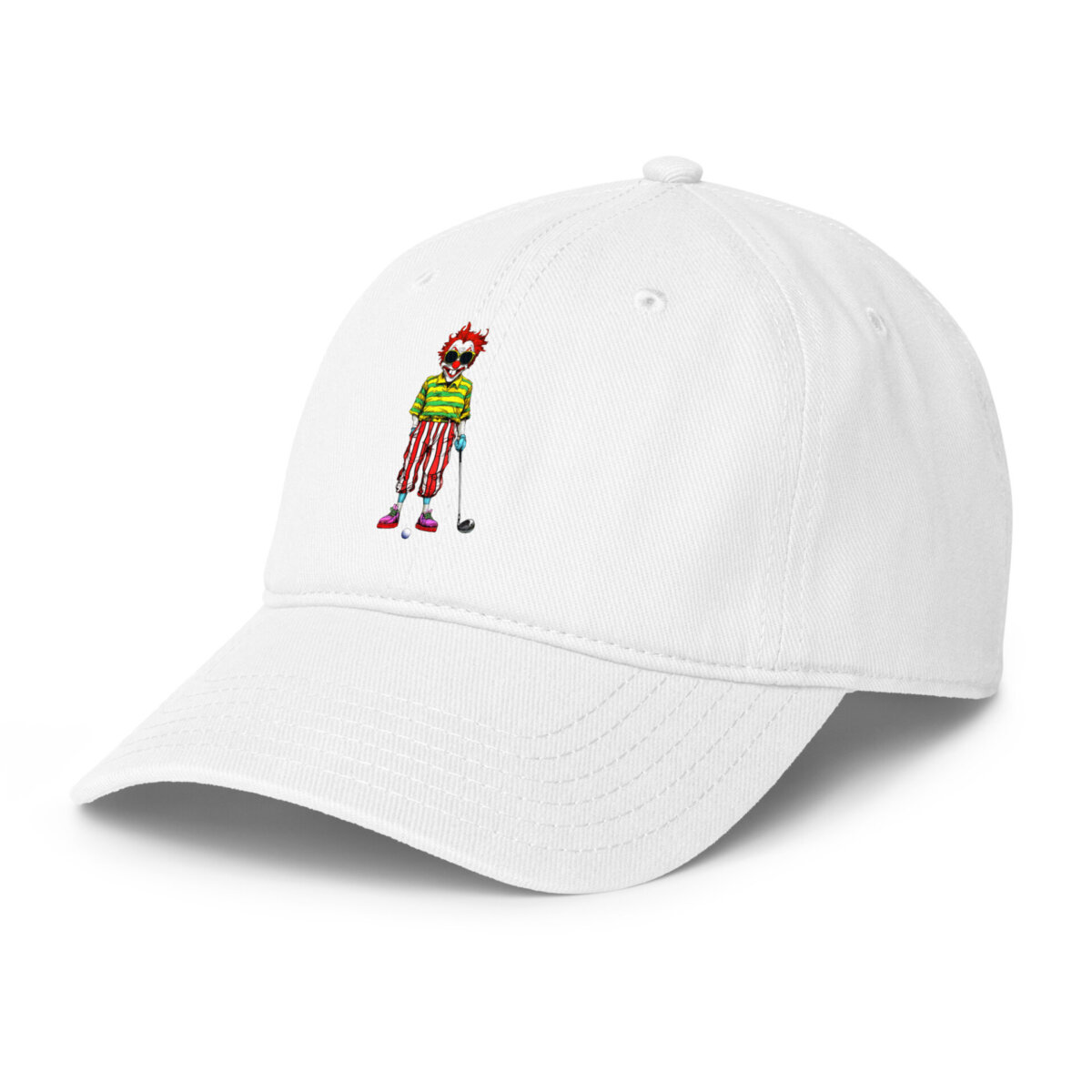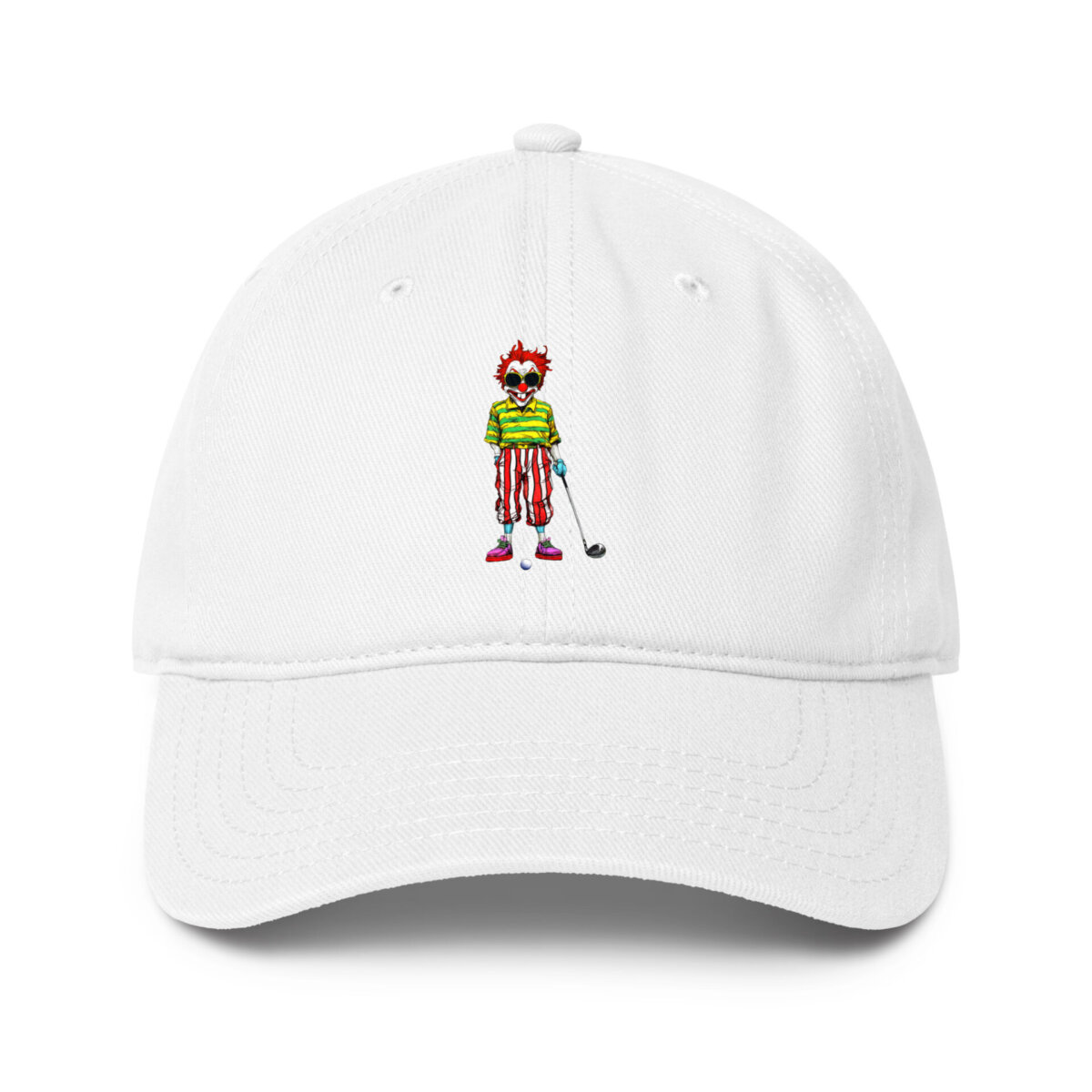 Dank des verstellbaren Verschlusses sitzt das Cap immer perfekt, während der robuste Stoff jedes Abenteuer mitmacht. Diese stylische Golf Clown Mütze ist weit mehr als nur ein Sonnenschutz; sie ist das finale Detail für deinen individuellen Golf Look.