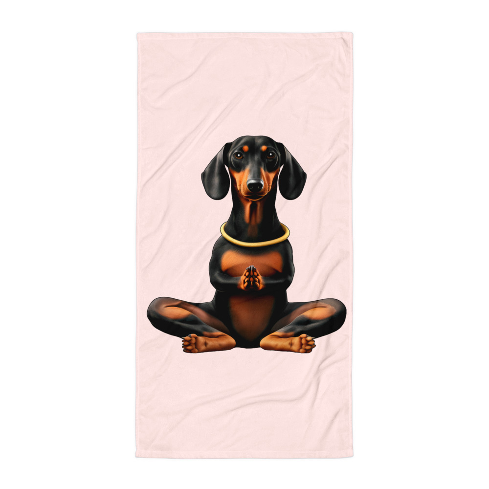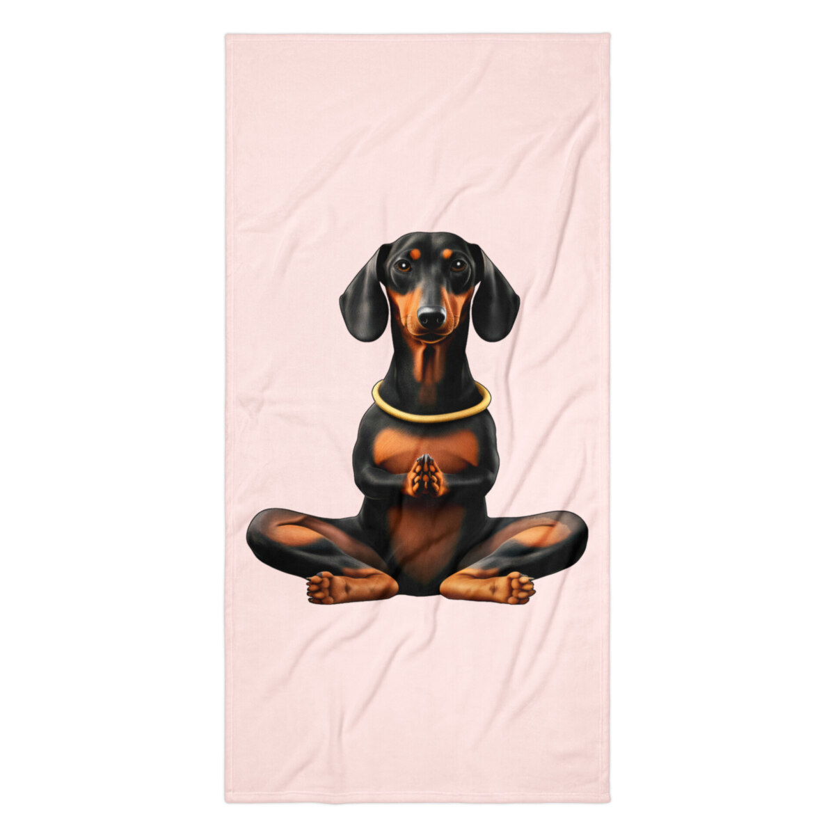 Ob nach dem Duschen, Schwimmen oder einem Strandtag: Dieses Yoga Badetuch kombiniert cooles Yoga Design mit hohem Komfort. Die bedruckte Vorderseite sorgt für den stylischen Yoga Effekt. Verleihe deinem Badezimmer einen frischen, farbenfrohen Look – mit diesem Yoga Dackel Badetuch.