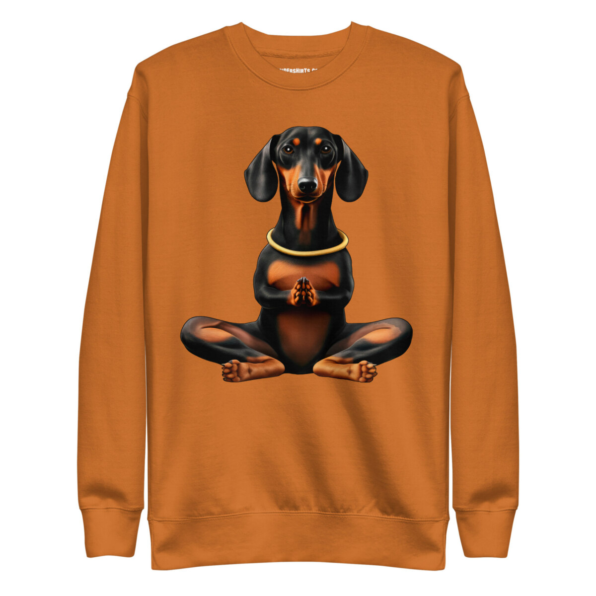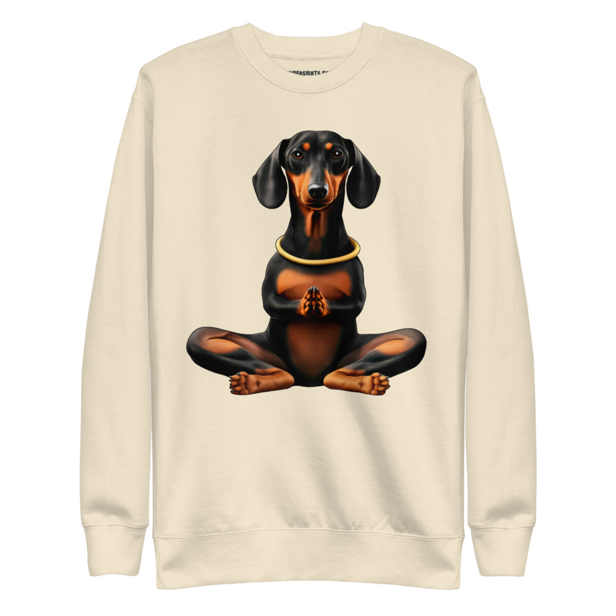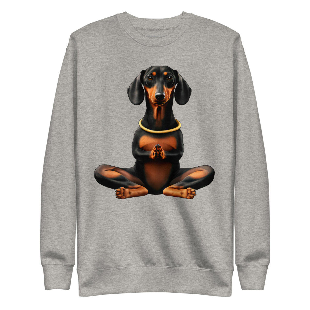 Dieser Yoga Pulli besticht durch seinen gerippten Rundhalsausschnitt und die hochwertige Passform. Dank der weichen Fleece-Innenseite ist dieser Yoga Frauen Pullover so gemütlich wie er aussieht. Ob als Einzelstück oder kombiniert – er ist der neue Favorit für jeden Dackel Fan. Ein echtes Must-have, das in der Garderobe stolzer Dackel nicht fehlen darf.