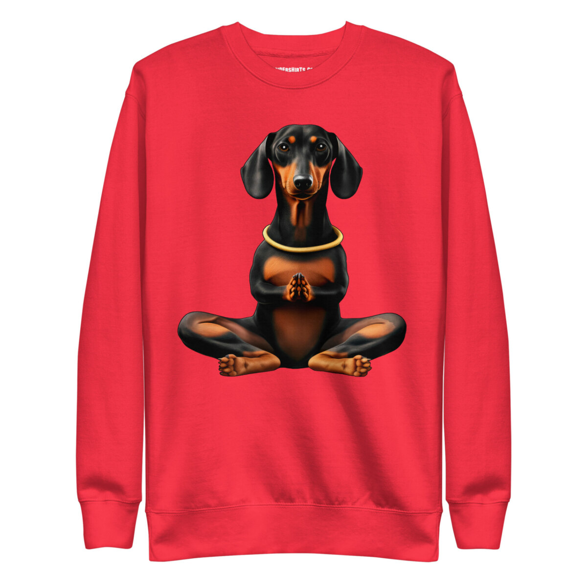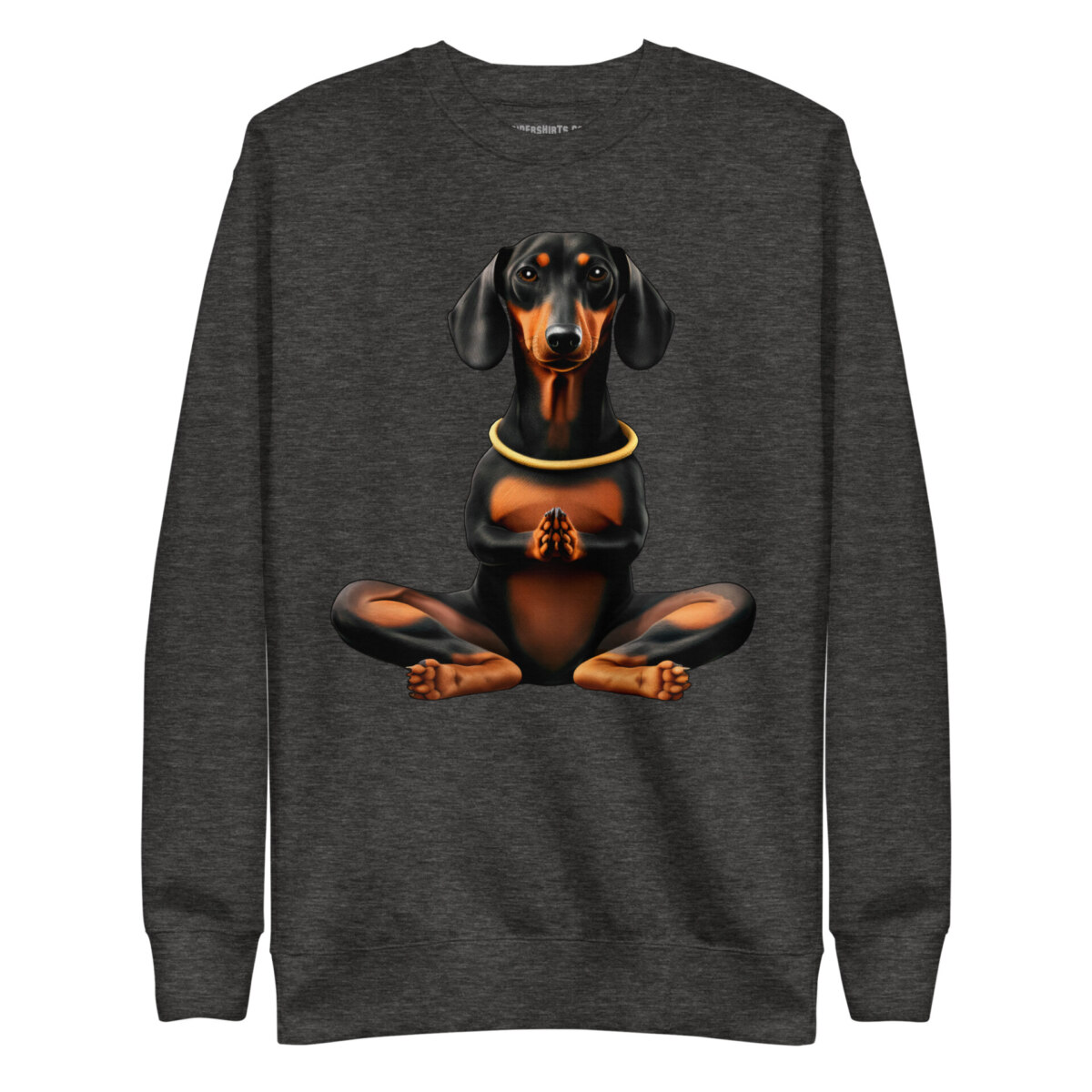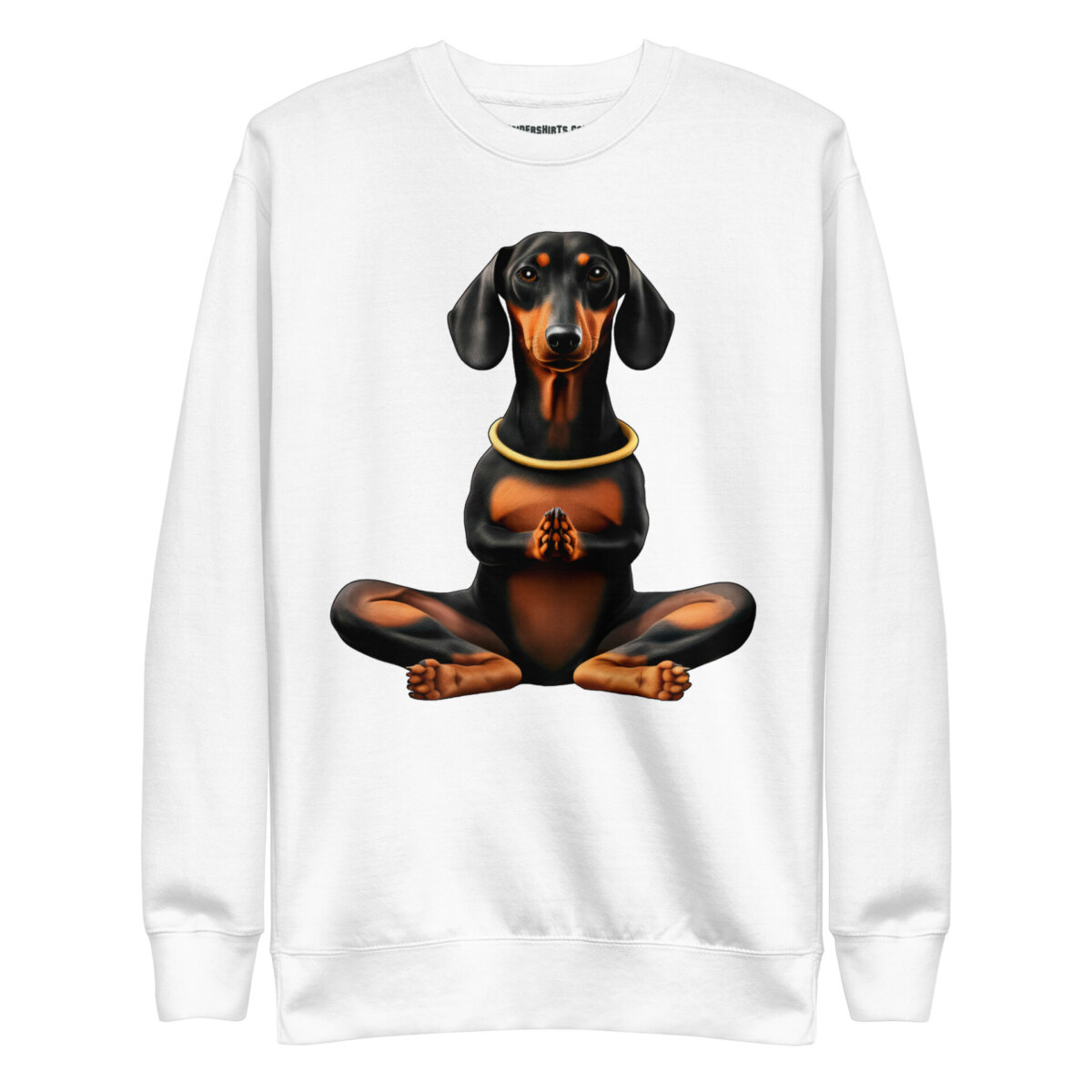Dieser Yoga Pulli besticht durch seinen gerippten Rundhalsausschnitt und die hochwertige Passform. Dank der weichen Fleece-Innenseite ist dieser Yoga Frauen Pullover so gemütlich wie er aussieht. Ob als Einzelstück oder kombiniert – er ist der neue Favorit für jeden Dackel Fan. Ein echtes Must-have, das in der Garderobe stolzer Dackel nicht fehlen darf.