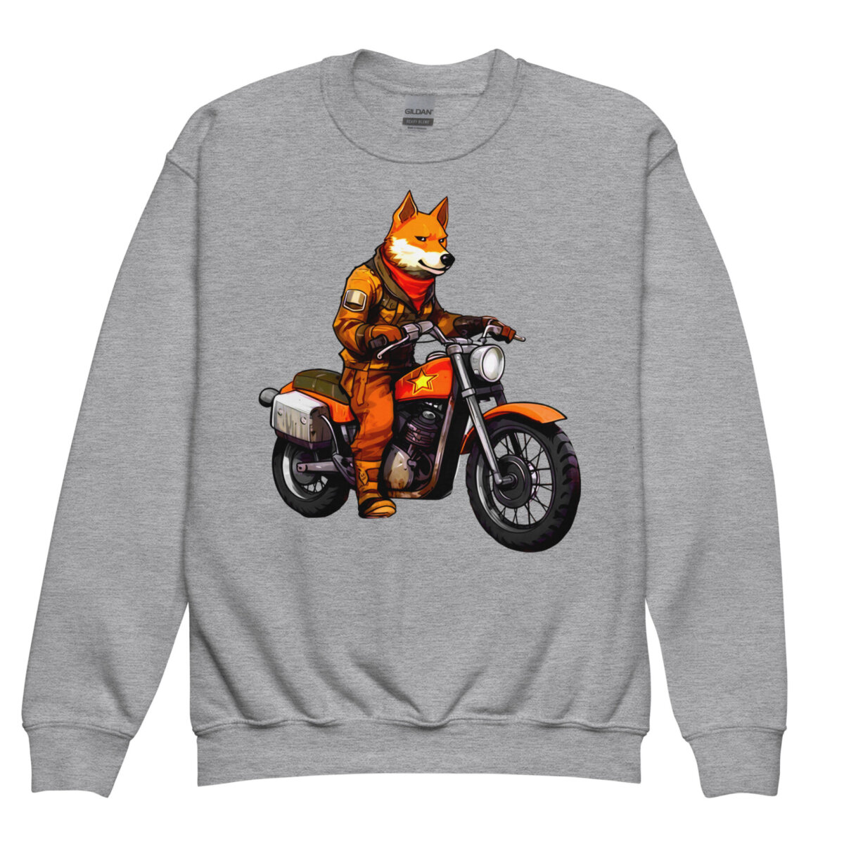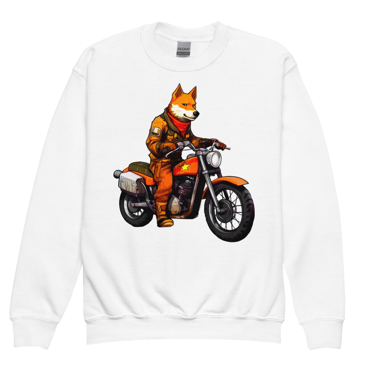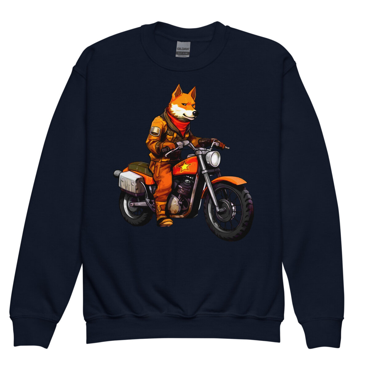 Auf diesem coolen Kinder Pullover gibt der schlaue Kerl am Lenker ordentlich Gas. Ein hübsches Design für alle kleinen Entdecker, die gerne mit viel Speed und einem Lächeln durch den Alltag flitzen. 🦊🏍️