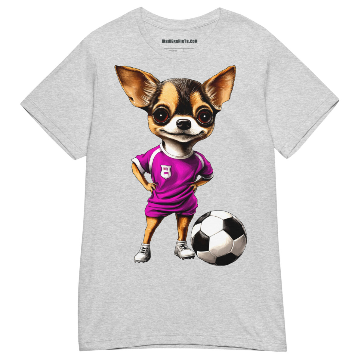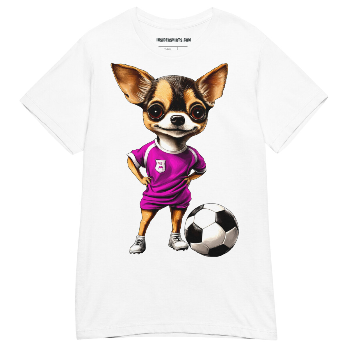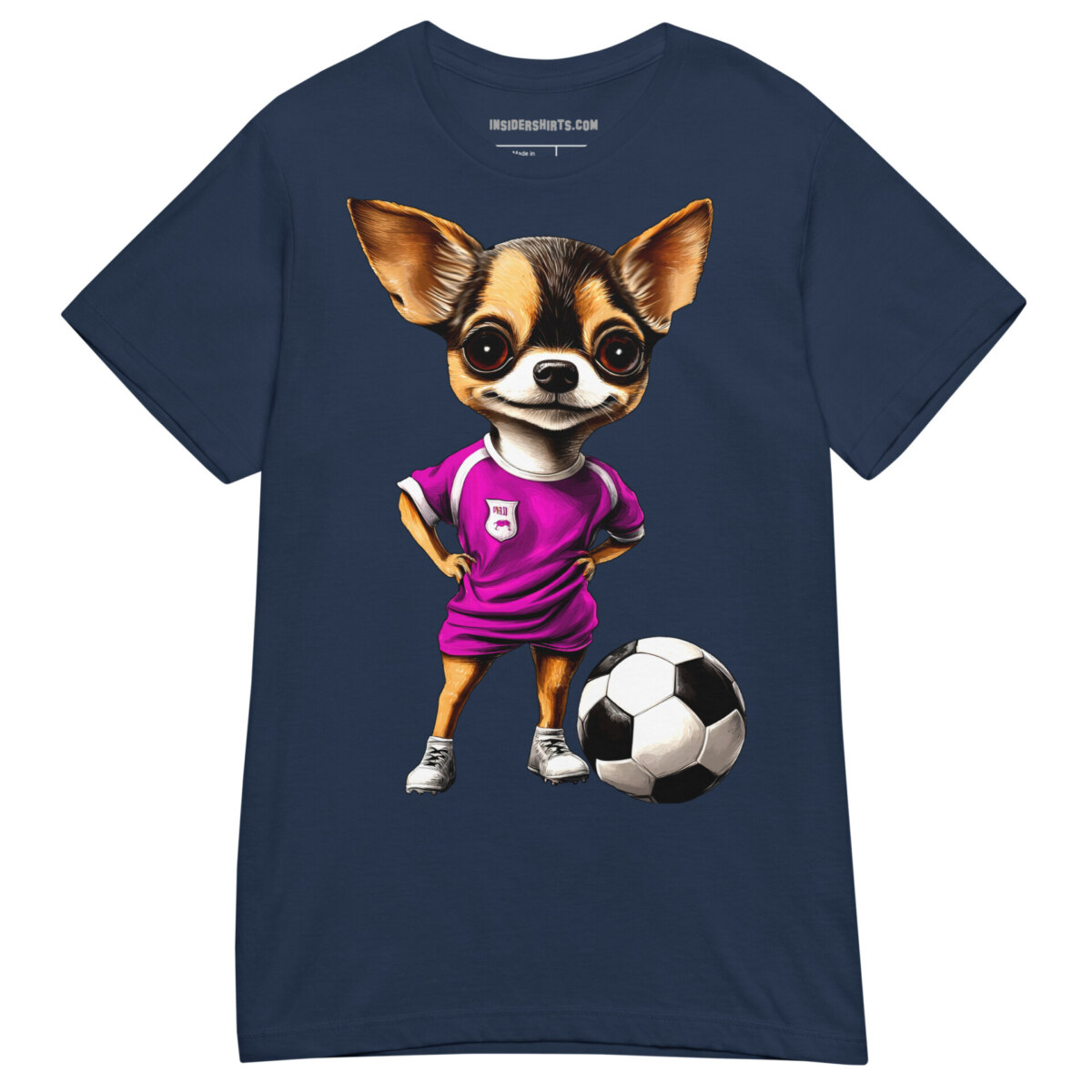 Ein Chihuahua, ein Fussball, der Blick fest auf das Netz gerichtet. Dieses Design feiert den Sportsgeist mit einem Augenzwinkern. Hol dir das Frauen T-Shirt, das zeigt, dass man auch als kleiner Flitzer ein Auge für das perfekte Zuspiel haben kann. Bequem, markant bedruckt und verdammt stilsicher.