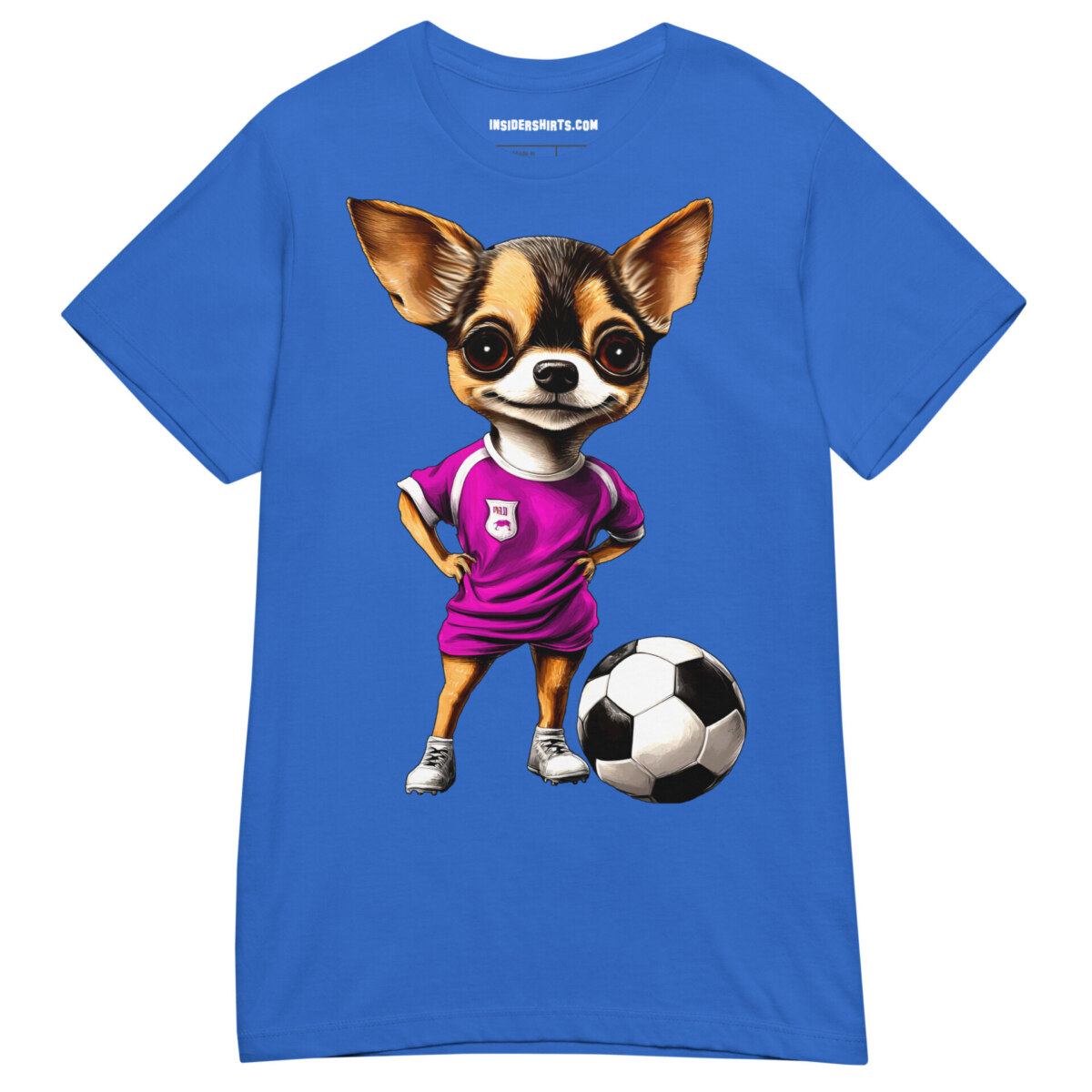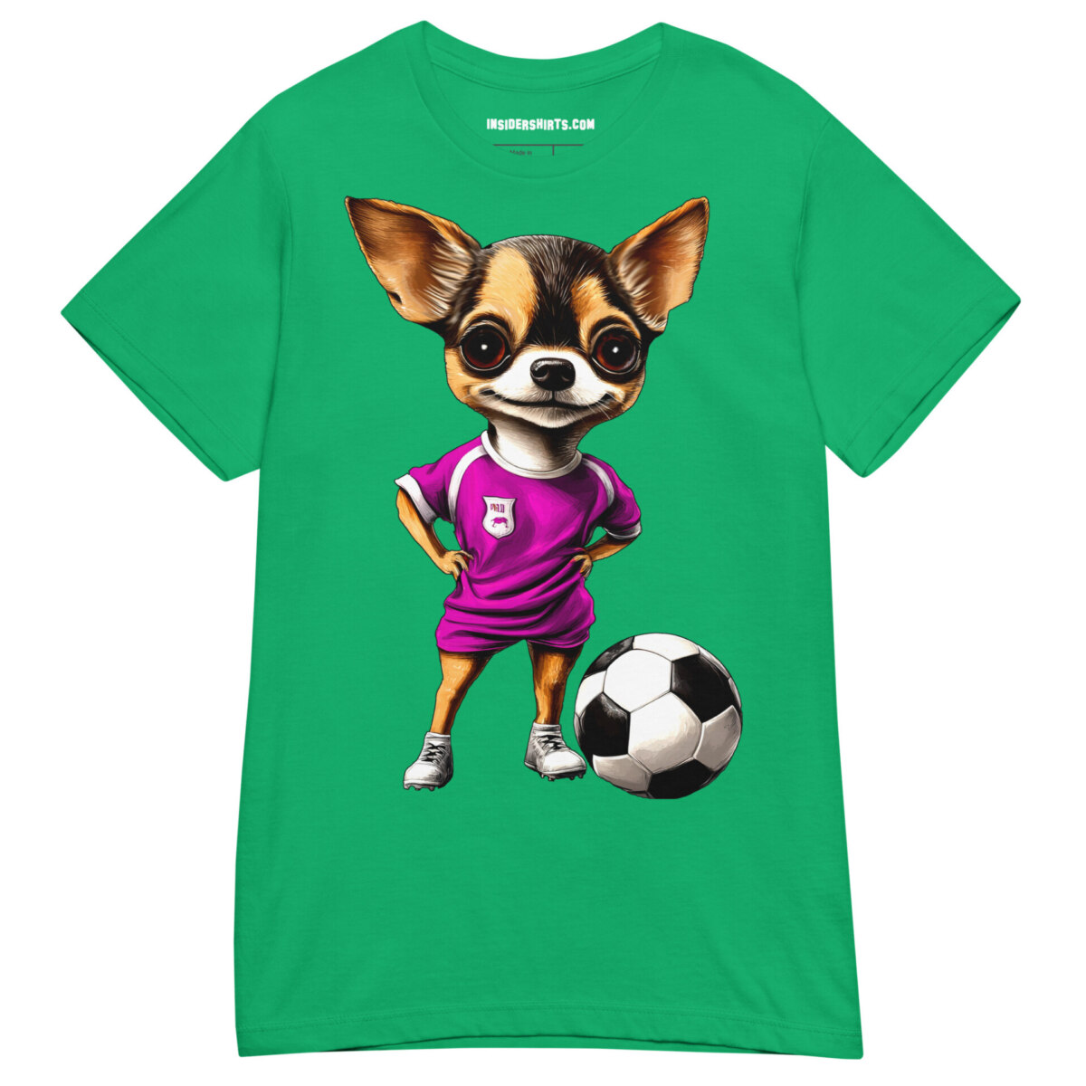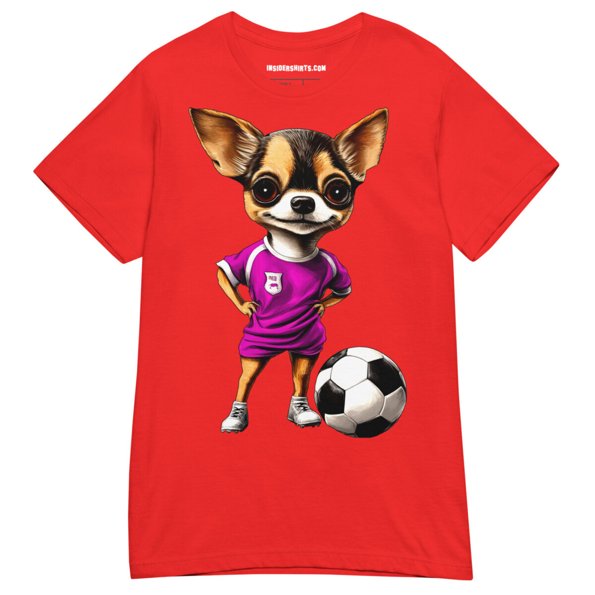 Ein Chihuahua, ein Fussball, der Blick fest auf das Netz gerichtet. Dieses Design feiert den Sportsgeist mit einem Augenzwinkern. Hol dir das Frauen T-Shirt, das zeigt, dass man auch als kleiner Flitzer ein Auge für das perfekte Zuspiel haben kann. Bequem, markant bedruckt und verdammt stilsicher.
