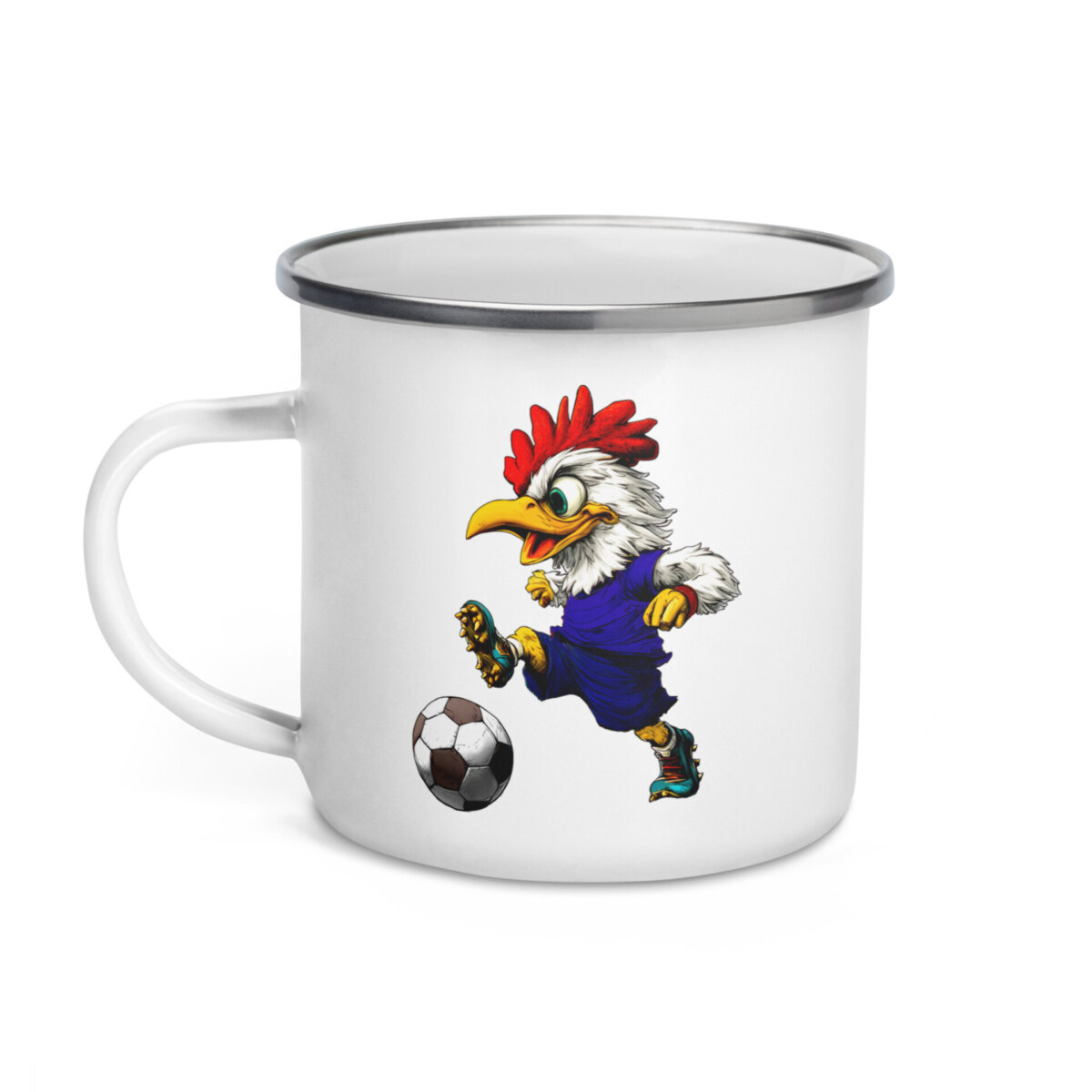 Wer gackert da vom Sieg? Mit dieser bruchsicheren Emaille-Tasse und dem motivierten Hahn am Fussball zeigst du jedem, dass wahrer Sportsgeist auch in der Wildnis perfekt aussieht. Dein unverwüstlicher Begleiter für das nächste Abenteuer: Die Fussball Emaille-Tasse.