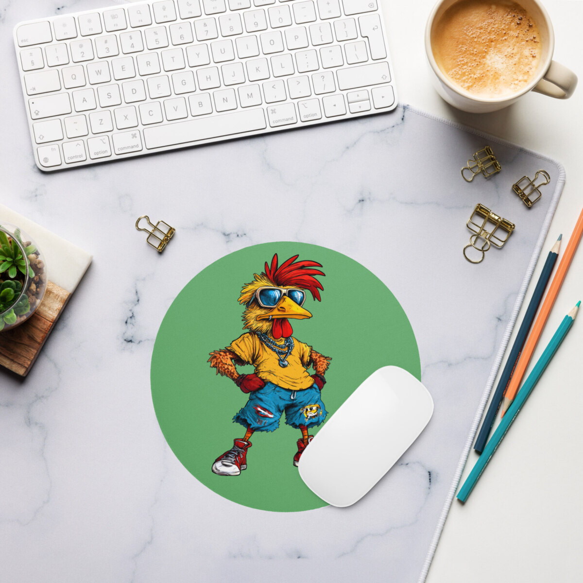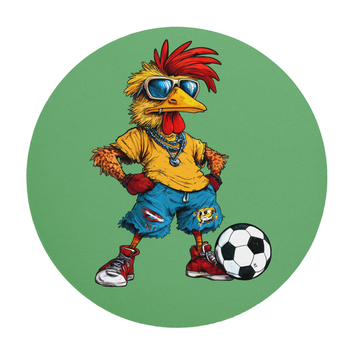 Erobere den digitalen Rasen mit tierischer Unterstützung! Wenn dieser Hahn zum Fallrückzieher ansetzt, mutiert deine gewöhnliche Mausmatte zum ultimativen Highlight für alle, die Humor und Sportgeist am Rechner lieben. Verleihe deinem Schreibtisch einen modernen Look mit unserer coolen runden Fussball Mausmatte. Die coole Fussball Huhn Mausmatte eignet sich ideal für gut aussehende Setups, während die glatte Oberfläche eine reibungslose Maussteuerung ermöglicht. Dank der rutschfesten Unterseite geniesst du maximale Stabilität und Langlebigkeit bei jedem Klick mit der Maus.