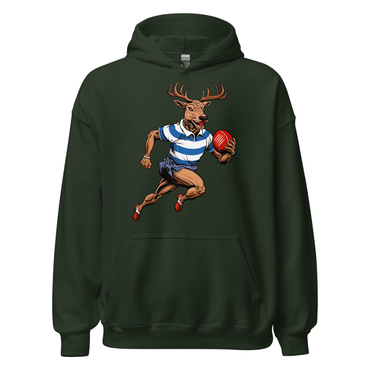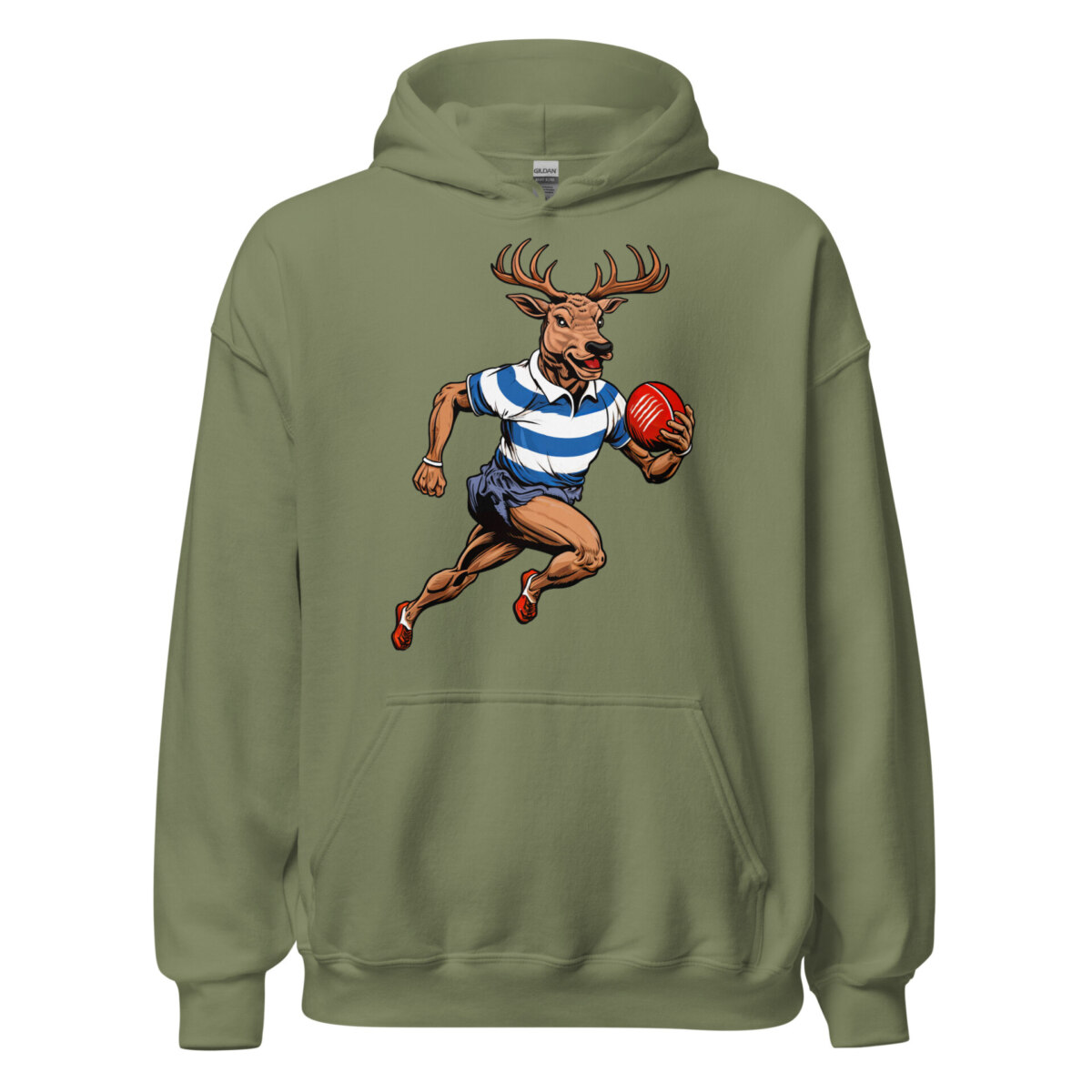 Dieser Hoodie ist das ultimative Piece für die Zeit vor und nach dem Match. Der Hirsch im Rugby-Gear bricht mit klassischen Sport-Logos und setzt ein klares Statement in Sachen individueller Streetwear ā robust, prƤsent und absolut authentisch.