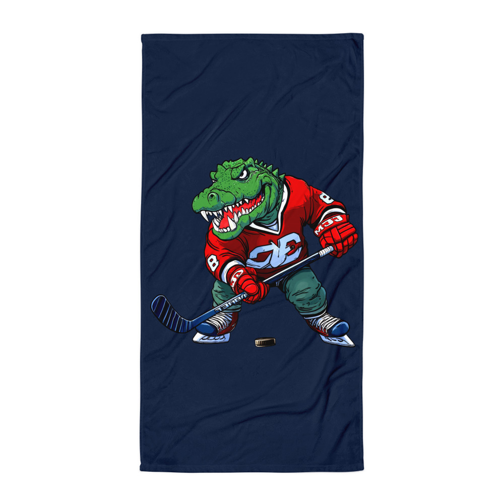 Ob nach dem Duschen, Schwimmen oder einem Strandtag: Dieses Eishockey Badetuch kombiniert cooles Eishockey Design mit hohem Komfort. Die bedruckte Vorderseite sorgt für den stylischen Eishockey Effekt. Verleihe deinem Badezimmer einen frischen, farbenfrohen Look – mit diesem Eishockey Krokodil Badetuch.