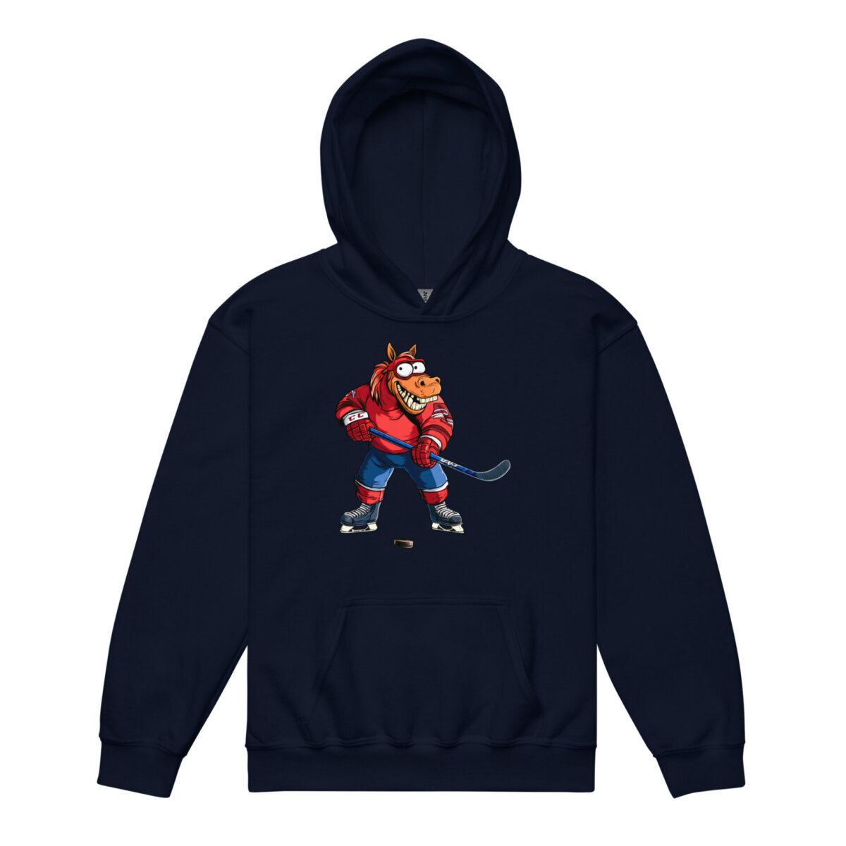 Dieser coole Hoodie katapultiert das Eishockey-Pferd direkt von der Eisfläche auf den Pausenplatz. Ein stilvoller Look für Kids, die im Sportunterricht gerne mal den Turbo zünden und zeigen, dass in ihnen ein echter Champion steckt.