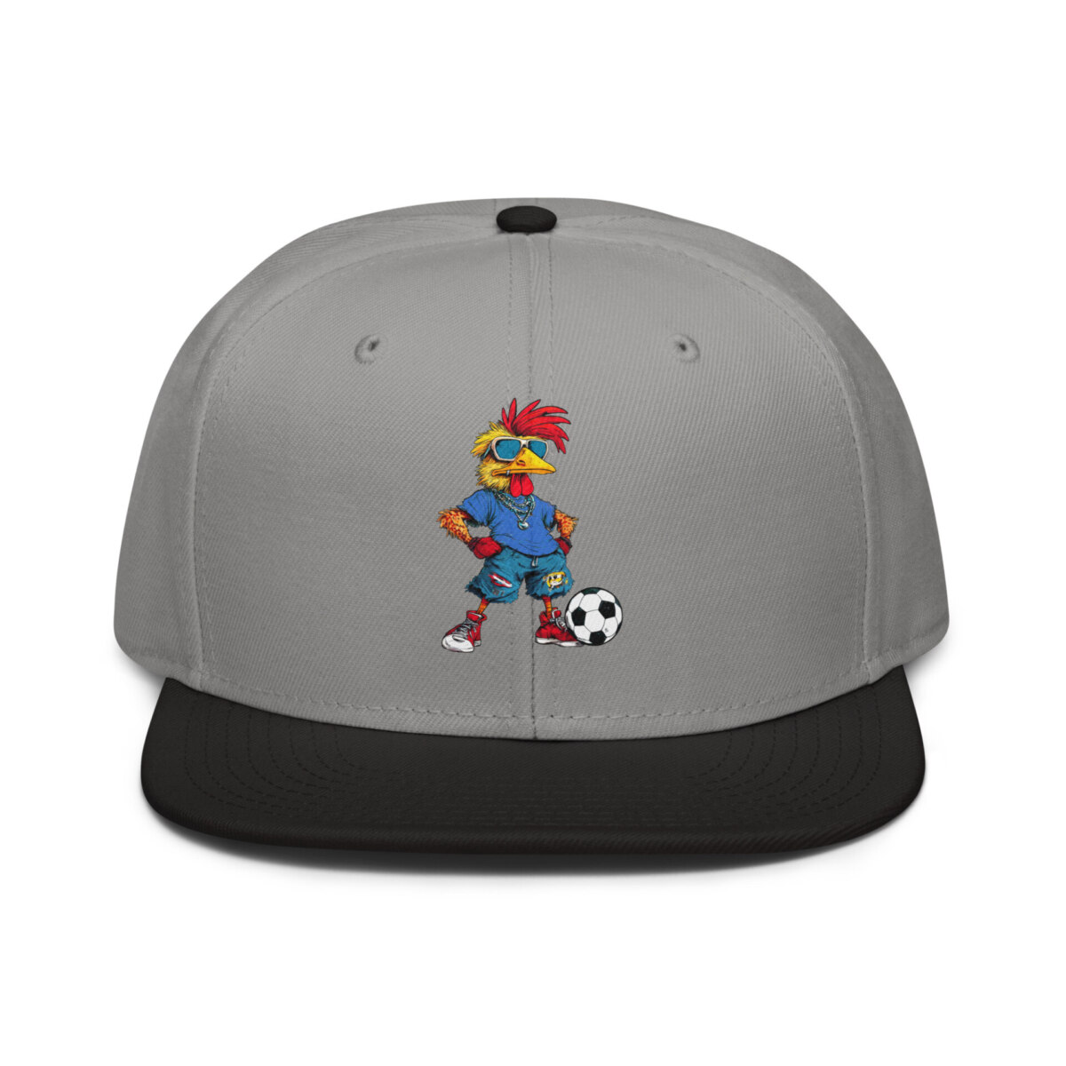 Stadion-Vibes für deinen Kopf: Diese stylische Snapback Cap mit dem treffsicheren Huhn beim Dribbling bringt sportliche Eleganz und eine ordentliche Portion Humor in dein nächstes Match. Fussball meets Hühner Streetwear: Diese Snapback-Cap ist mehr als nur ein Accessoire – sie ist dein tägliches Fussball Statement. Mit ihrem coolen Style und dem kompromisslos flachen Schirm setzt sie neue Massstäbe in Sachen Urban-Style. Wähle aus verschiedenen Farben genau den Vibe, der zu deiner Fussball Attitude passt. Egal ob du beim Fussball alles gibst oder die City dein Catwalk ist – diese Cap macht dich zum unangefochtenen Style-Huhn-Master. Werde jetzt Teil der exklusiven Hühner-Community und hol dir das Upgrade für deinen Kopf.