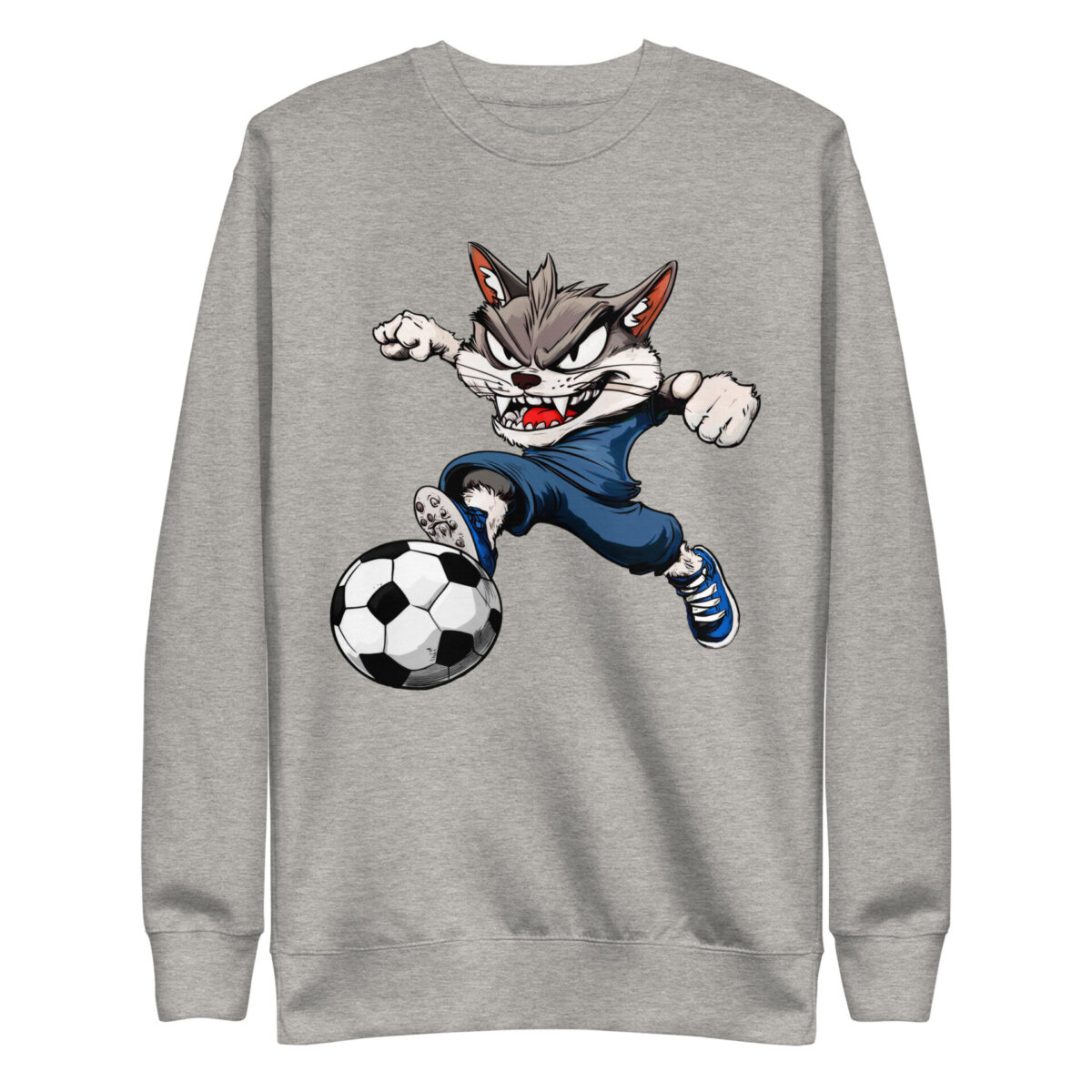 Setz ein Statement mit diesem klassischen Fussball Männer Pullover. Ob als lässiges Element für deinen modernen Streetwear-Look oder als gemütlicher Begleiter im Alltag – dieser Fussball Katzen Pulli überzeugt mit seiner perfekten Passform. Hochwertige Rippbündchen an Ärmeln und Saum sowie der verstärkte Rundhalsausschnitt sorgen für eine saubere Silhouette, die immer sitzt.