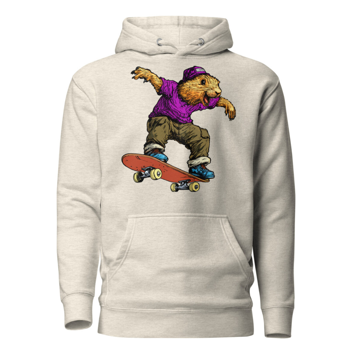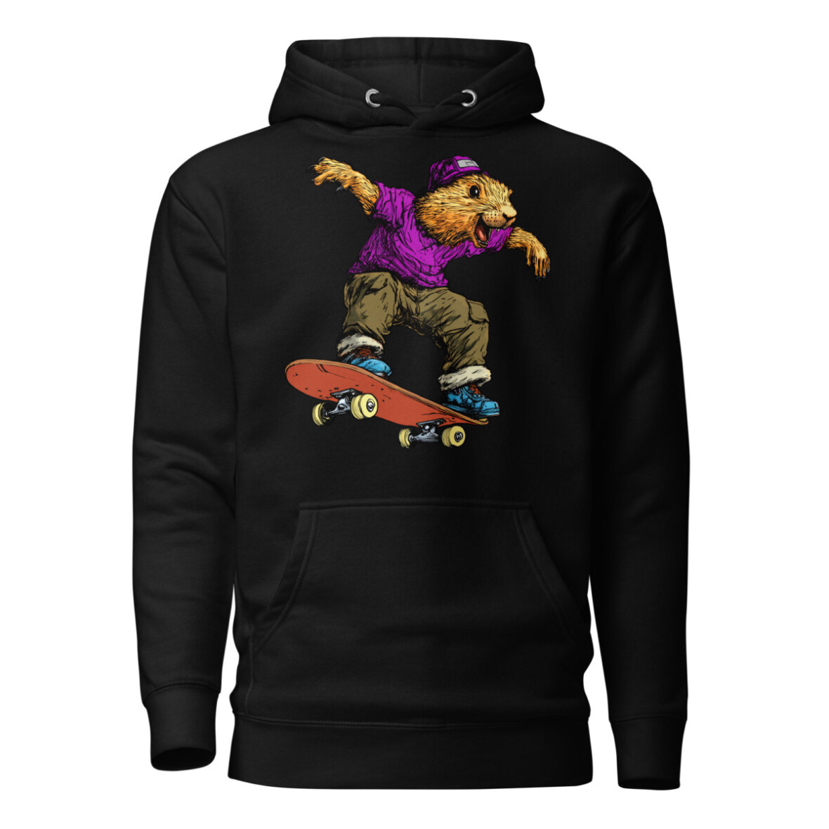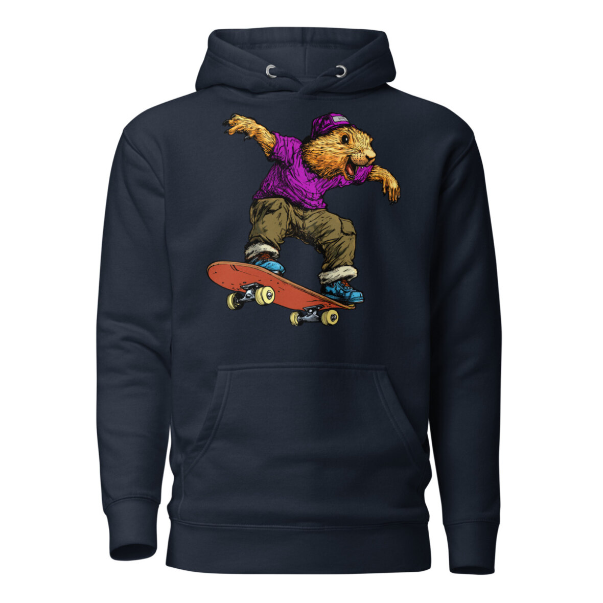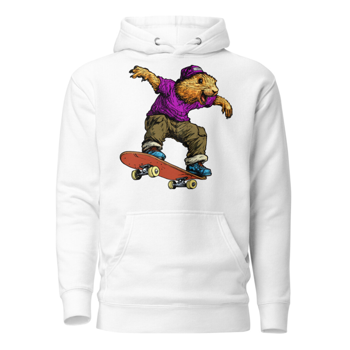 Wer sagt, dass Murmeltiere nur schlafen? Auf diesem stylischen Frauen Kapuzenpulli zeigt das Murmeltier am Skateboard echte Profi-Tricks und bringt eine ordentliche Portion Humor in dein Outfit. Wer sagt, dass Gemütlichkeit nicht stylisch sein kann? Dieser Skateboard Kapuzenpulli für Frauen vereint lässigen Streetwear-Vibe mit absolutem Wohlfühlfaktor. Ob als kuscheliger Begleiter an kühlen Tagen oder als Statement-Piece für dein Outfit – dieser Skateboard Frauen Pullover punktet mit einer praktischen Kängurutasche und einer wärmenden Kapuze.