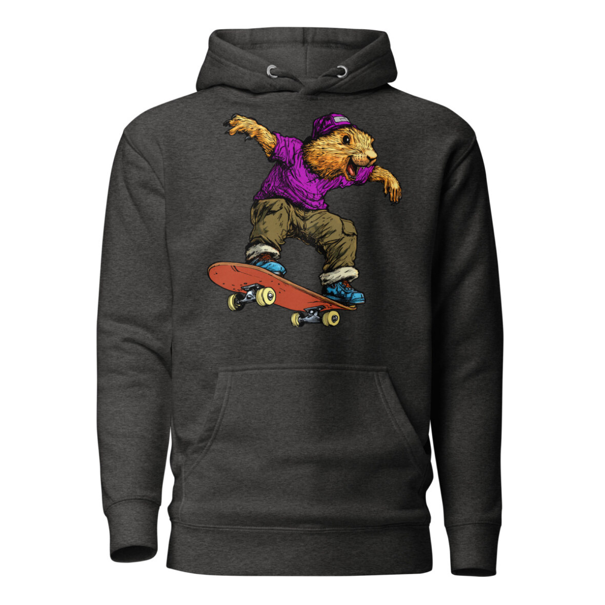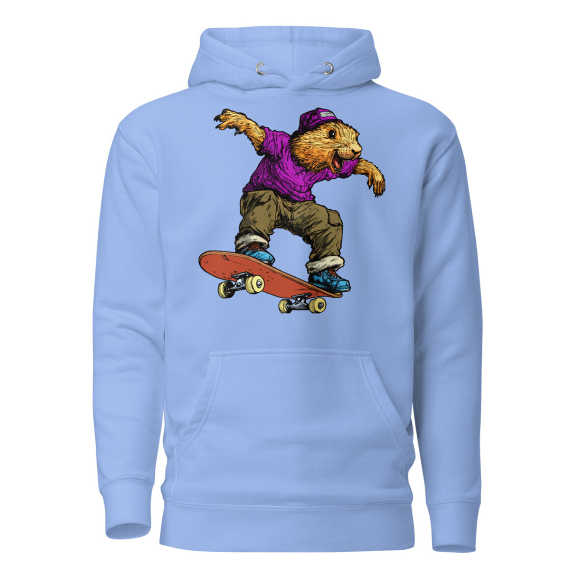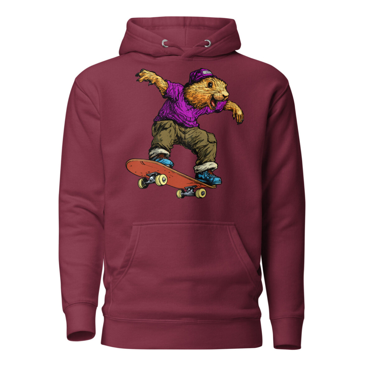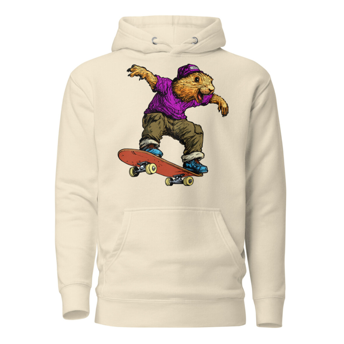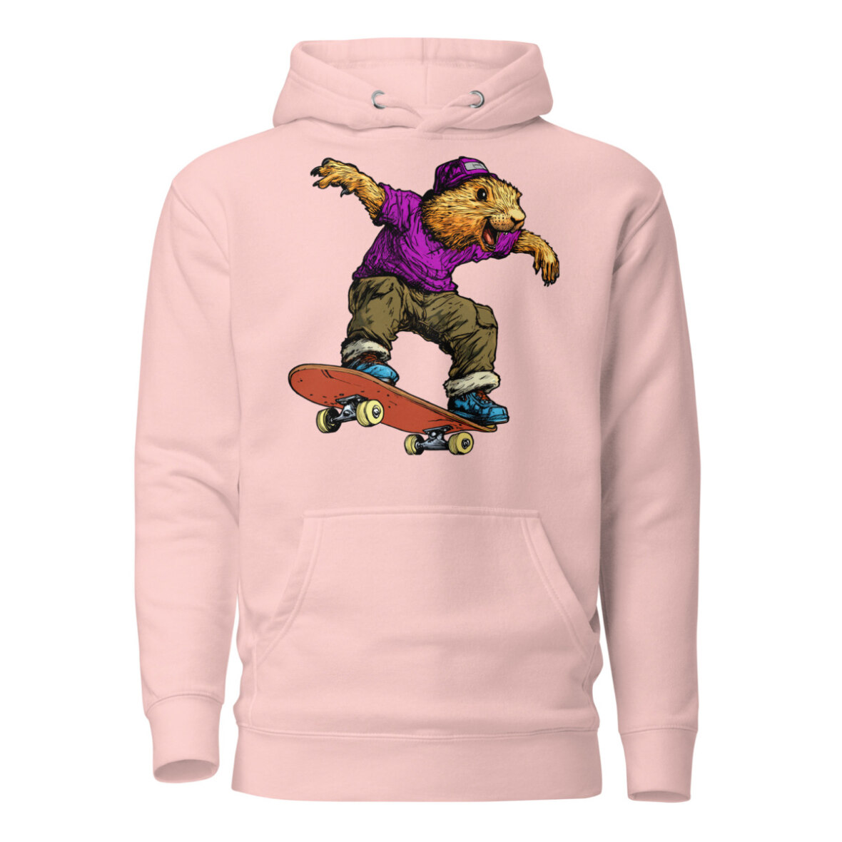 Wer sagt, dass Murmeltiere nur schlafen? Auf diesem stylischen Frauen Kapuzenpulli zeigt das Murmeltier am Skateboard echte Profi-Tricks und bringt eine ordentliche Portion Humor in dein Outfit. Wer sagt, dass Gemütlichkeit nicht stylisch sein kann? Dieser Skateboard Kapuzenpulli für Frauen vereint lässigen Streetwear-Vibe mit absolutem Wohlfühlfaktor. Ob als kuscheliger Begleiter an kühlen Tagen oder als Statement-Piece für dein Outfit – dieser Skateboard Frauen Pullover punktet mit einer praktischen Kängurutasche und einer wärmenden Kapuze.