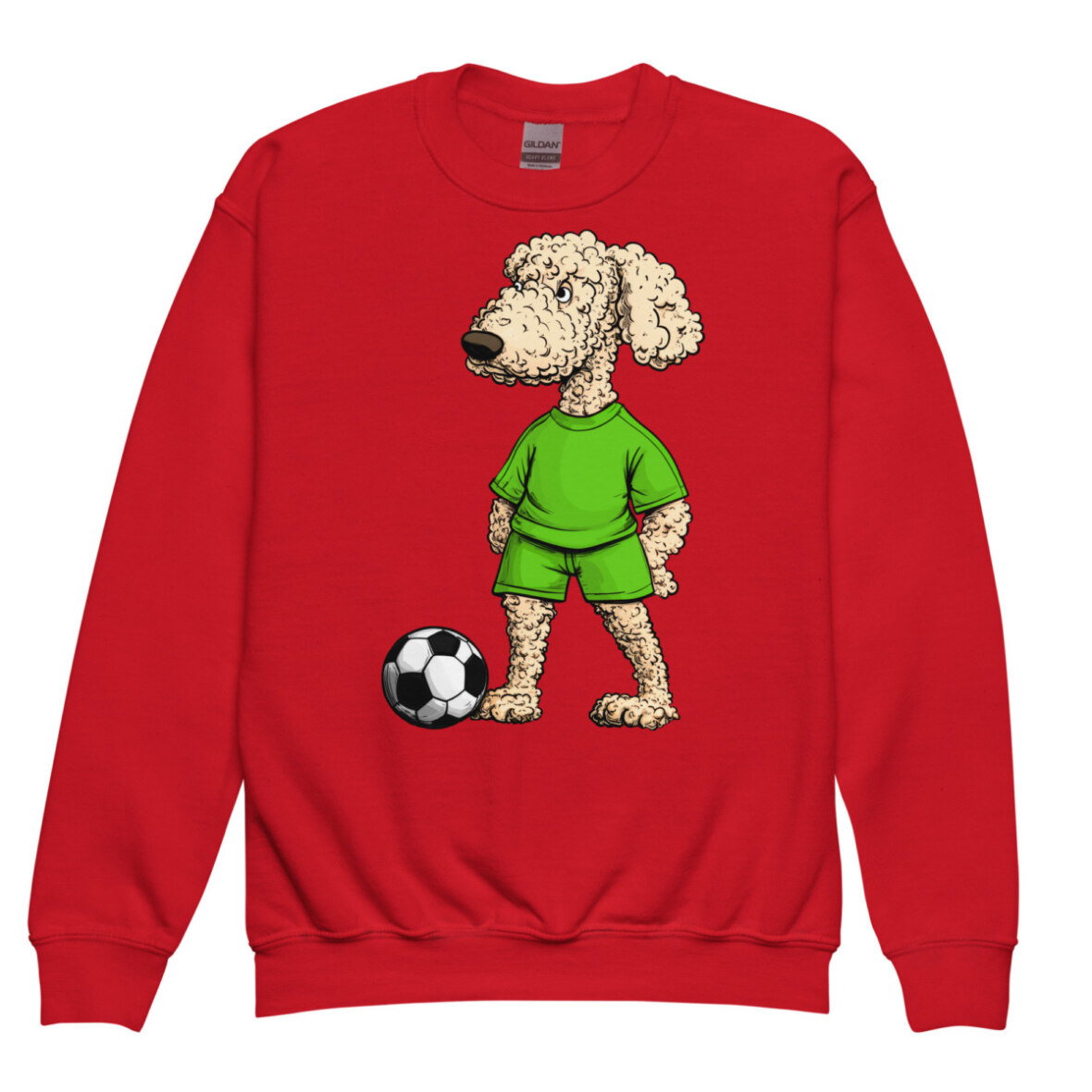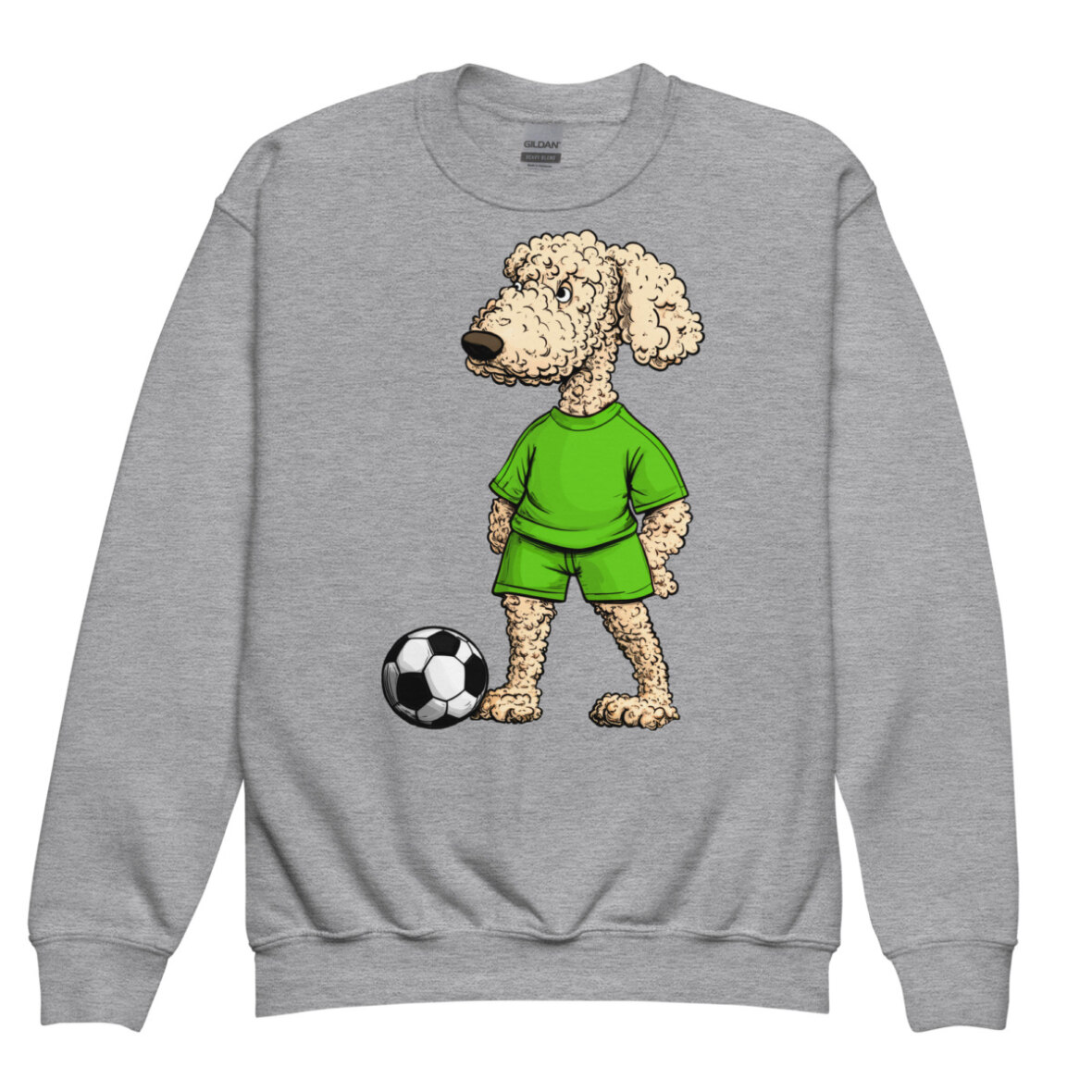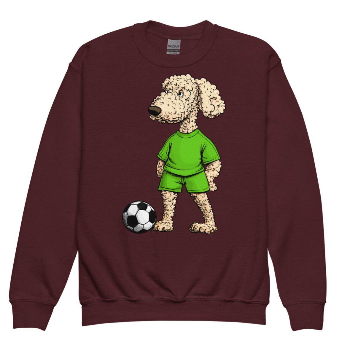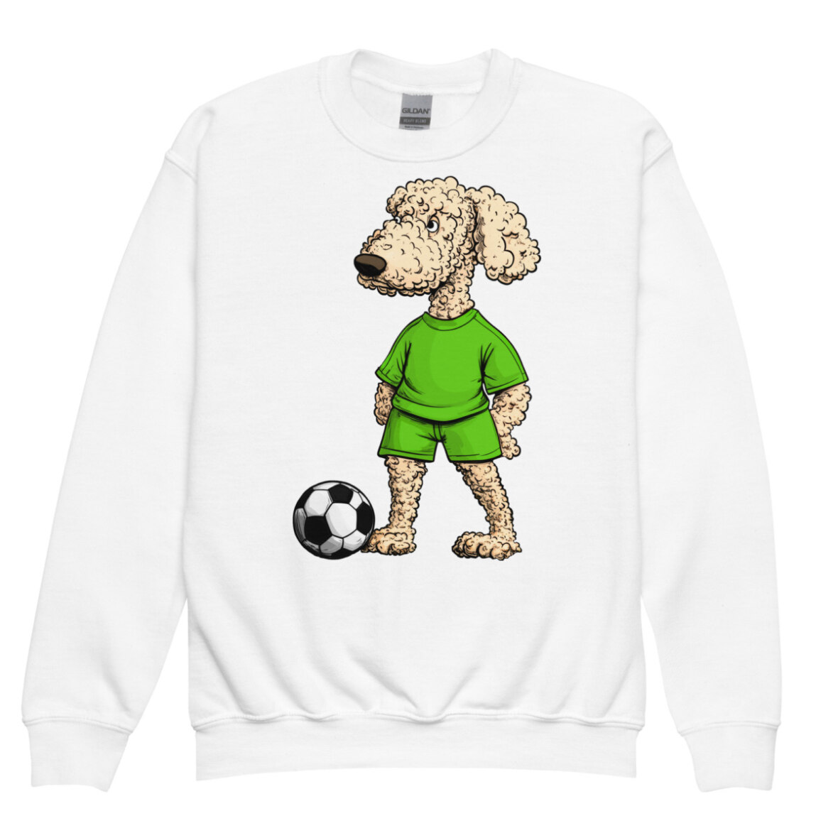 Wer sagt, dass Pudel nur schick aussehen? Auf diesem bequemen Pullover zeigt der Pudel am Fussball echte Profi-Manieren und bringt ordentlich Power in den Kleiderschrank deiner Kids. Weich, im Fussball Style und bereit für jedes Abenteuer: Dieser Kinderpullover überzeugt mit Komfort und Spass. Ob Spielplatz-Mission oder Chillen mit den Freunden auf dem Sofa, dieser Kinderpulli macht alles mit. Ob unterwegs oder gemütlich zu Hause – Kinder werden den Fussball Look und das Tragegefühl lieben.