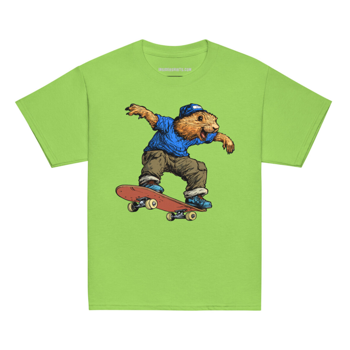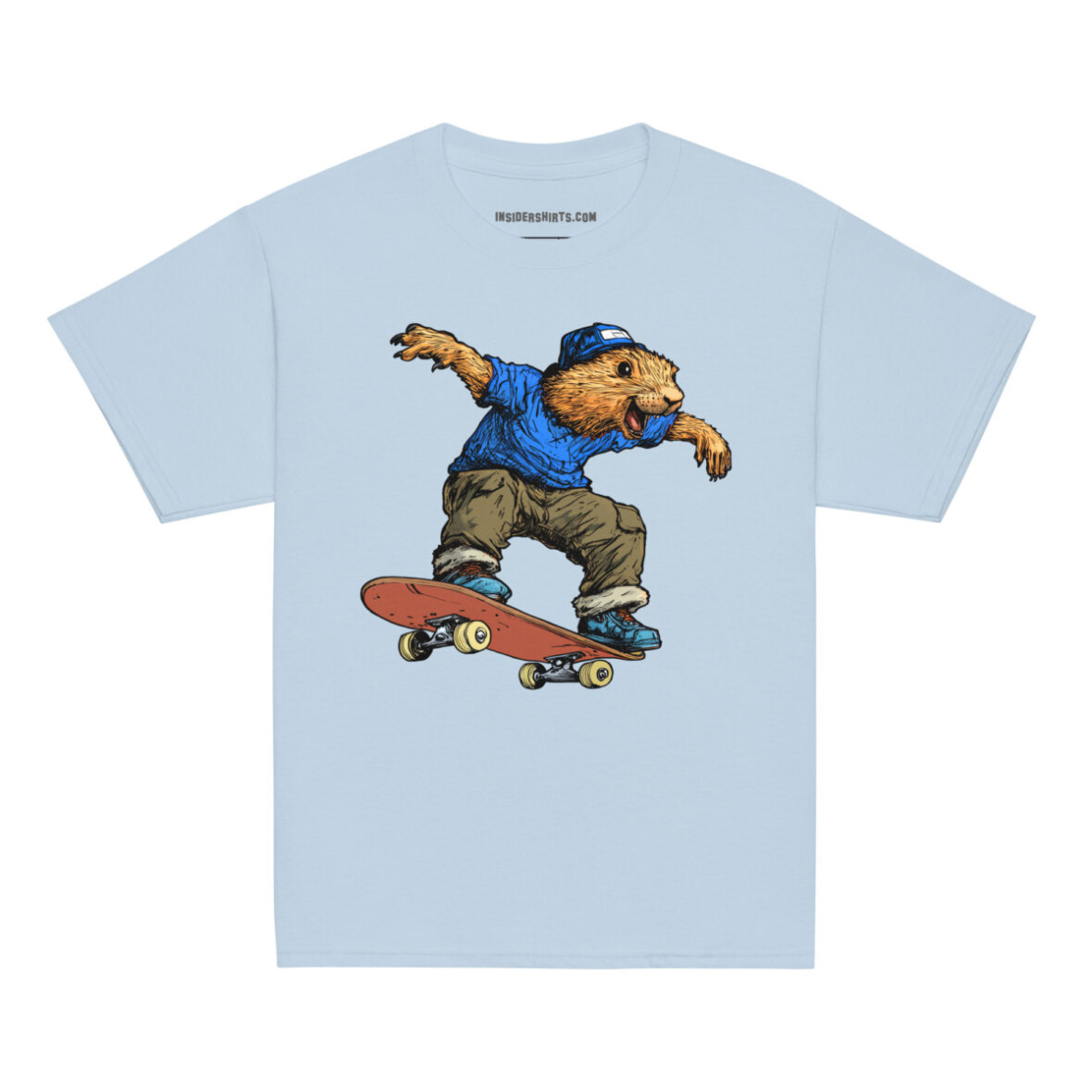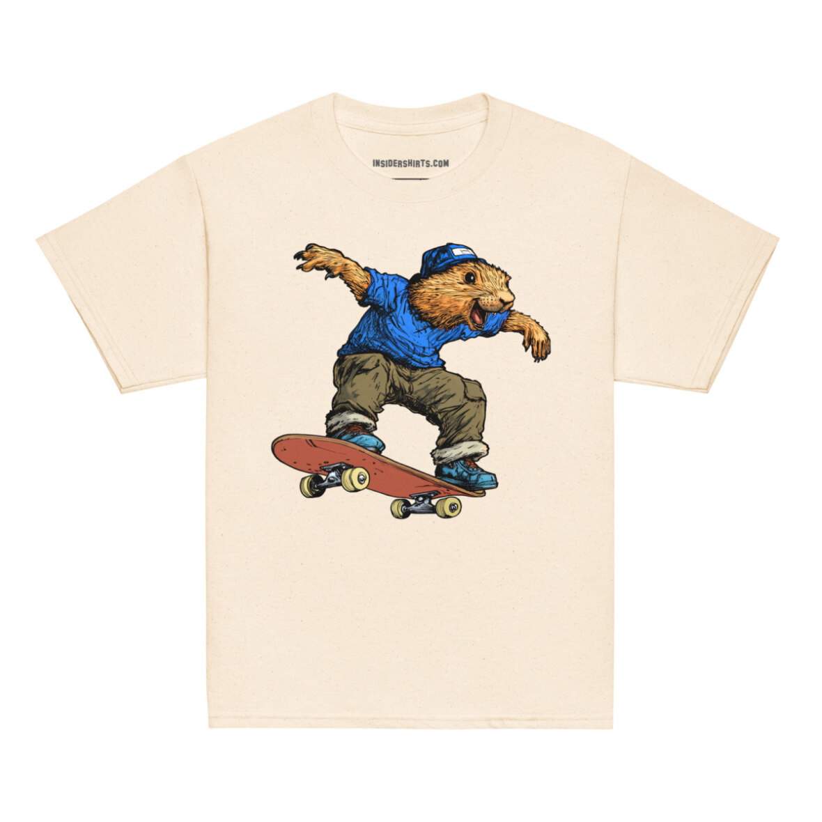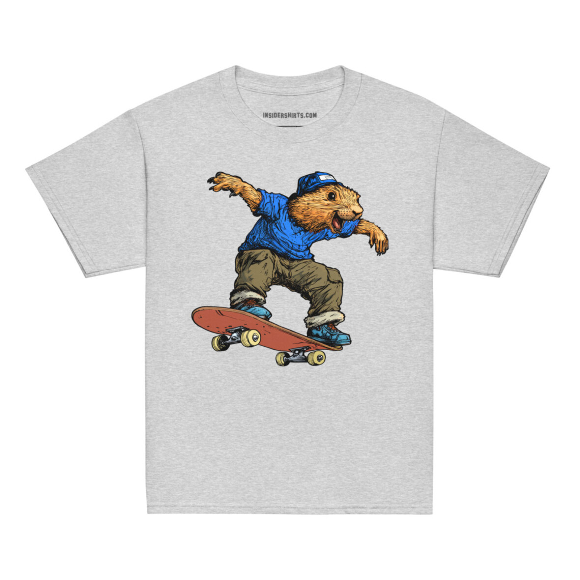 Winterschlaf gestrichen: Hol dir das stylische Kinder T-Shirt mit dem rollenden Murmeltier für einen unschlagbaren Look auf dem Pausenplatz. Wer sich für das klassische Kinder T-Shirt entscheidet, setzt auf Alltagstauglichkeit mit Skateboard Style: Das bei hoher Qualität, tollem Tragekomfort und fairem Preis. Ob Spielplatz, Pausenplatz oder Freizeitspass – dieses vielseitige Skateboard Shirt für Kinder macht alles mit. Langlebig, stylisch und super kombinierbar – ein echtes Lieblingsstück für coole Kinder und ihren Skateboard Eltern gleichermassen.