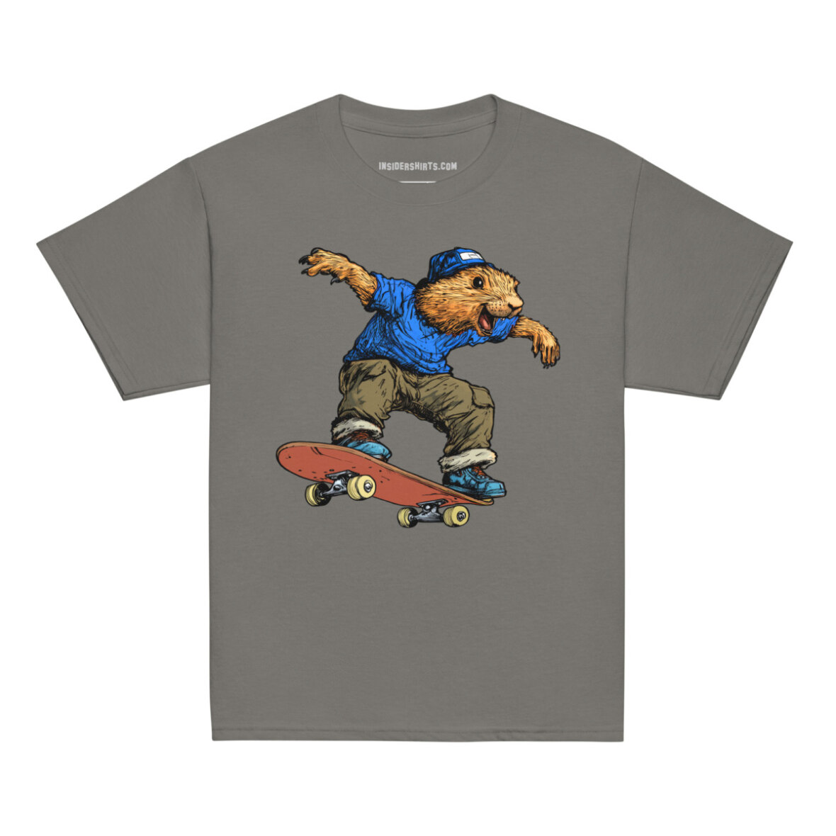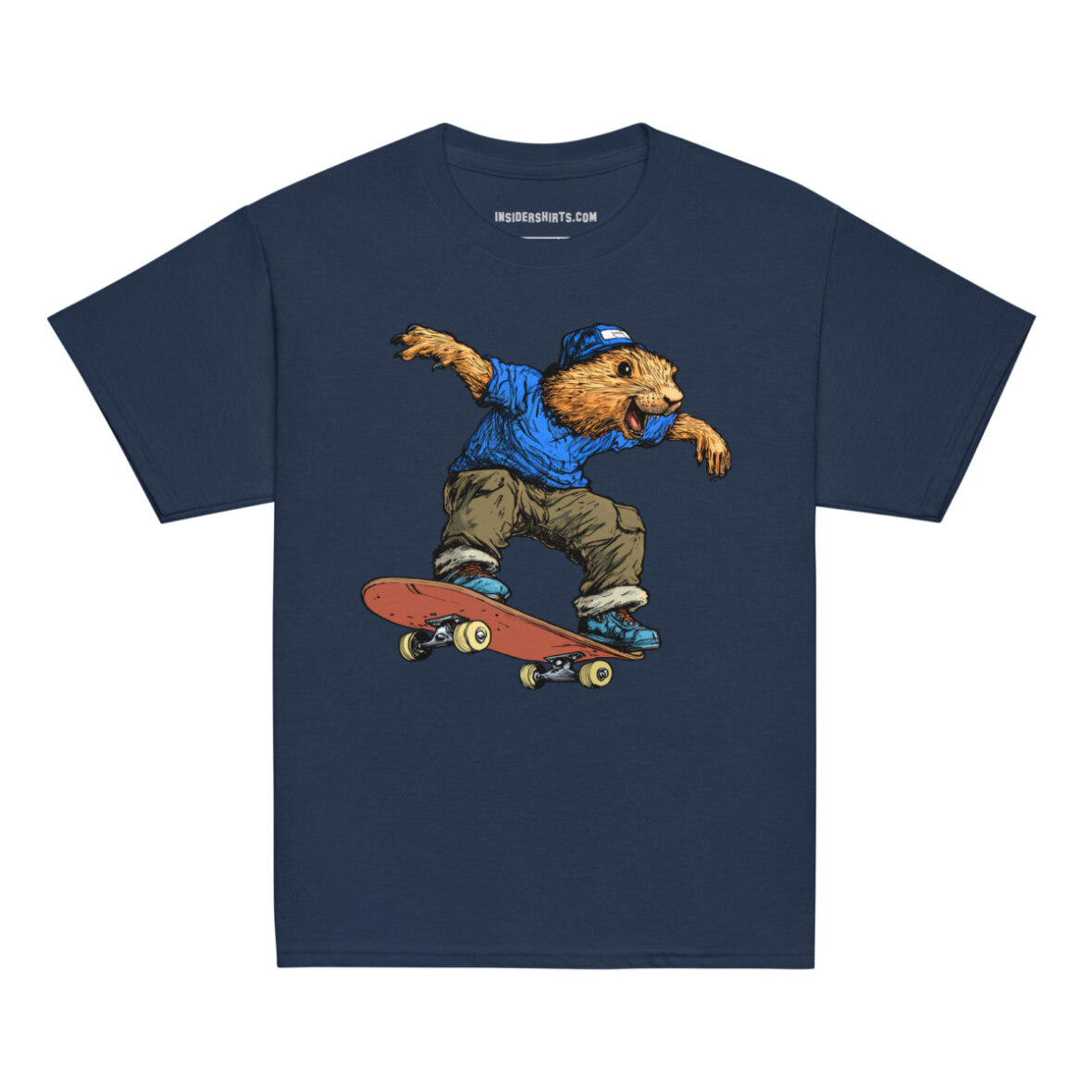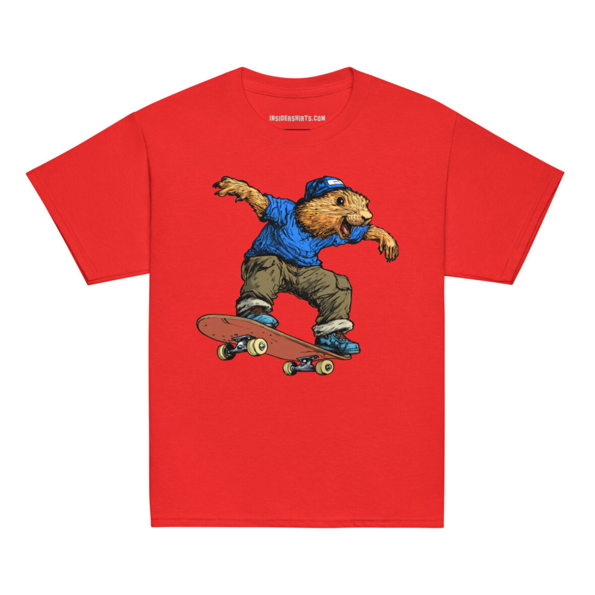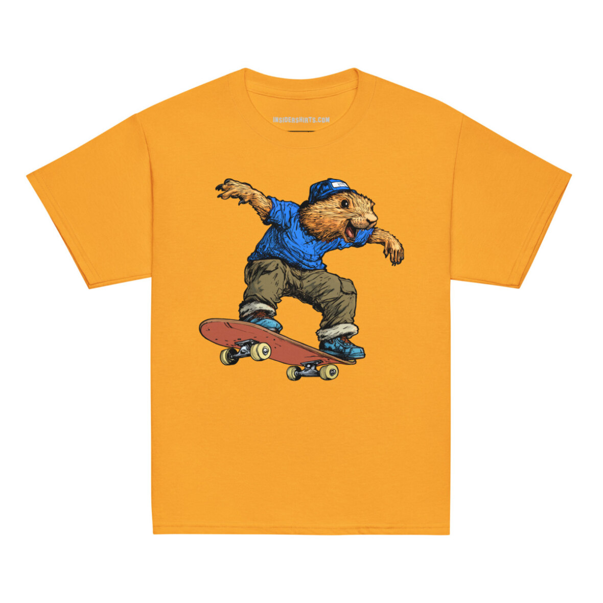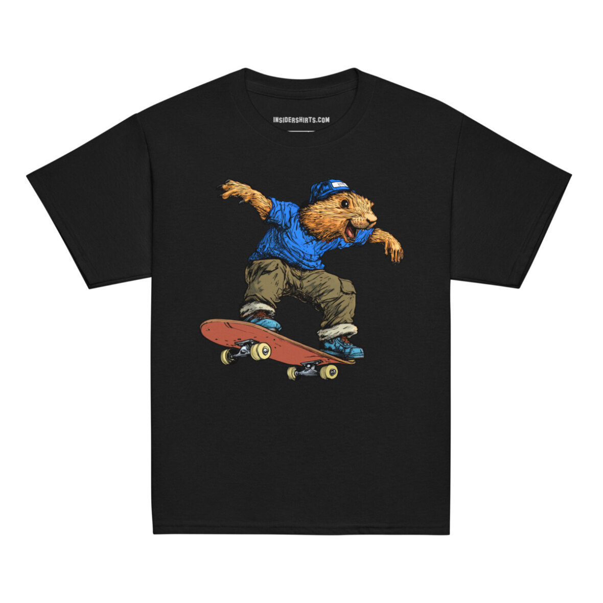 Winterschlaf gestrichen: Hol dir das stylische Kinder T-Shirt mit dem rollenden Murmeltier für einen unschlagbaren Look auf dem Pausenplatz. Wer sich für das klassische Kinder T-Shirt entscheidet, setzt auf Alltagstauglichkeit mit Skateboard Style: Das bei hoher Qualität, tollem Tragekomfort und fairem Preis. Ob Spielplatz, Pausenplatz oder Freizeitspass – dieses vielseitige Skateboard Shirt für Kinder macht alles mit. Langlebig, stylisch und super kombinierbar – ein echtes Lieblingsstück für coole Kinder und ihren Skateboard Eltern gleichermassen.