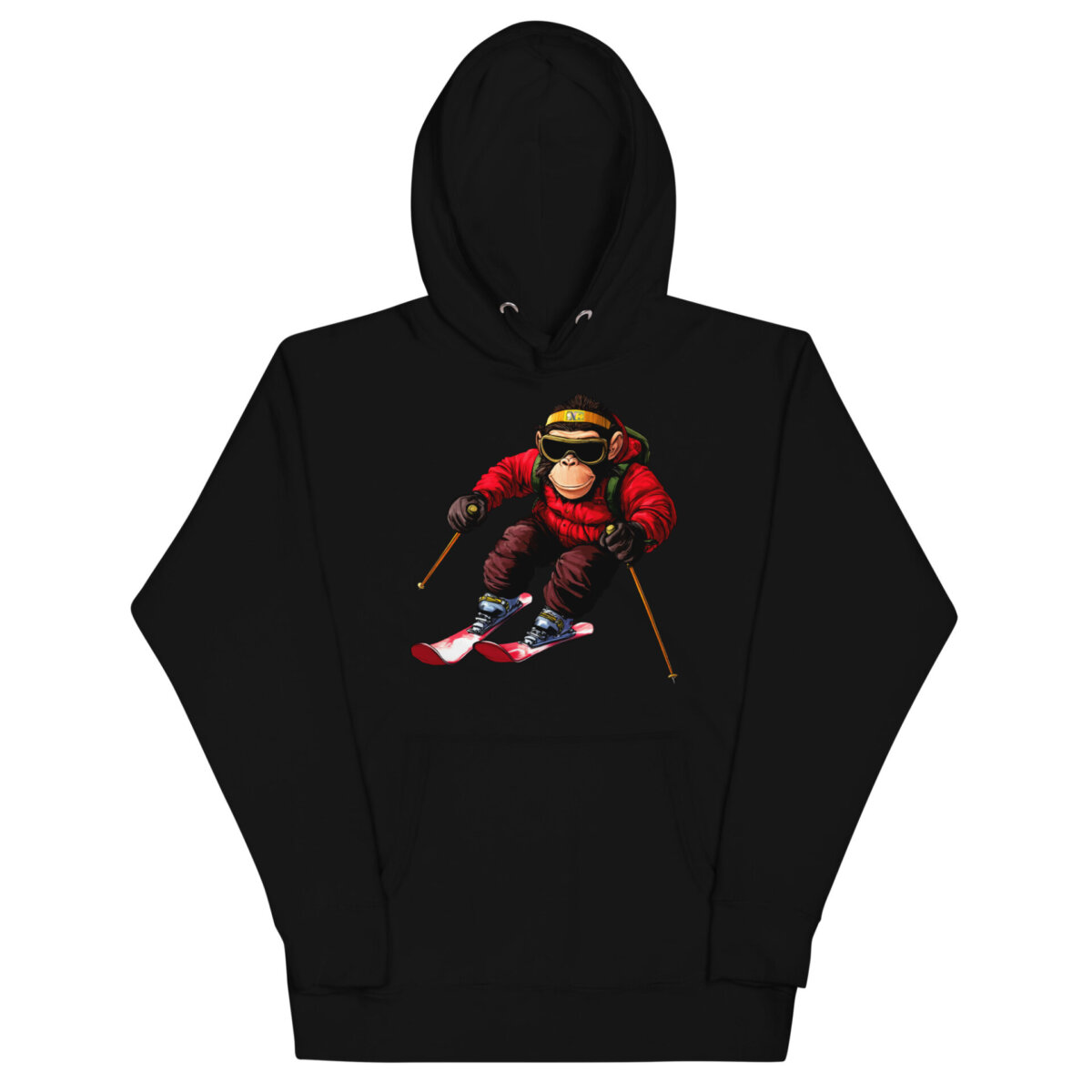 Dieser Frauen Kapuzenpulli rückt den Ski Chimp direkt ins Scheinwerferlicht deines Outfits. Ein stilvoller Auftritt für alle, die die Abfahrt mit einer Portion Humor und coolen Kurven bƤndigen wollen. ā·ļøš