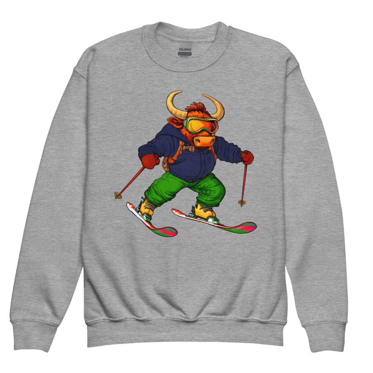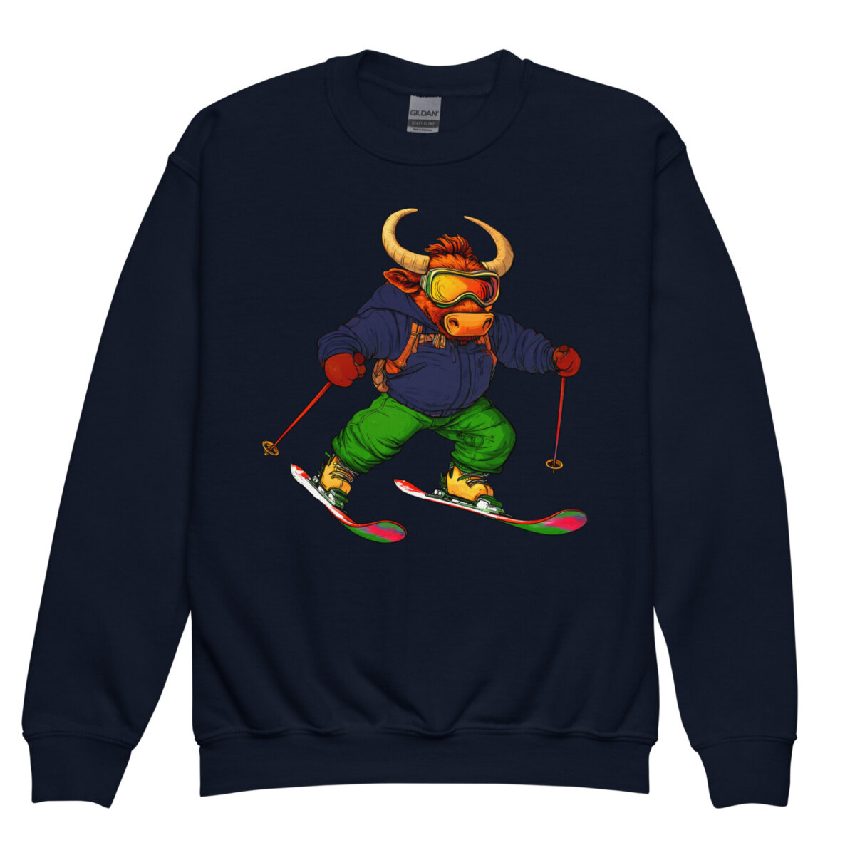 Wenn dieser Stier auf die Bretter steigt, zittert der Berg! Dieser bequeme Kinder Pullover feiert den puren Vorwärtsdrang – perfekt für kleine Pisten-Rowdys, die keine Angst vor steilen Hängen haben und im Schnee am liebsten ihre eigenen Spuren hinterlassen. Weich, im Skifahrer Style und bereit für jedes Abenteuer: Dieser Kinderpullover überzeugt mit Komfort und Spass. Ob Spielplatz-Mission oder Chillen mit den Freunden auf dem Sofa, dieser Stiere Kinderpulli macht alles mit. Ob unterwegs oder gemütlich zu Hause – Kinder werden den Ski Look und das Stier Design lieben.