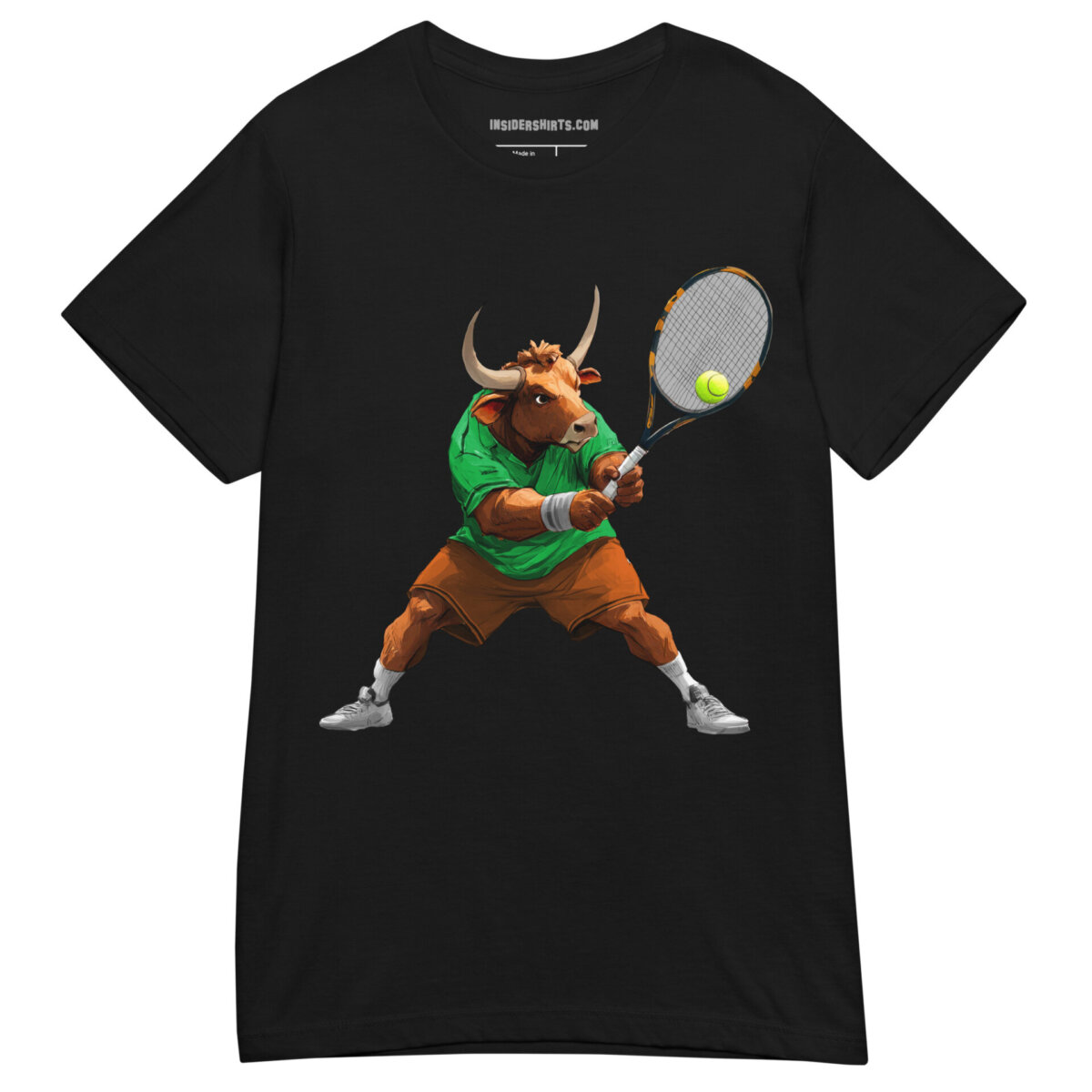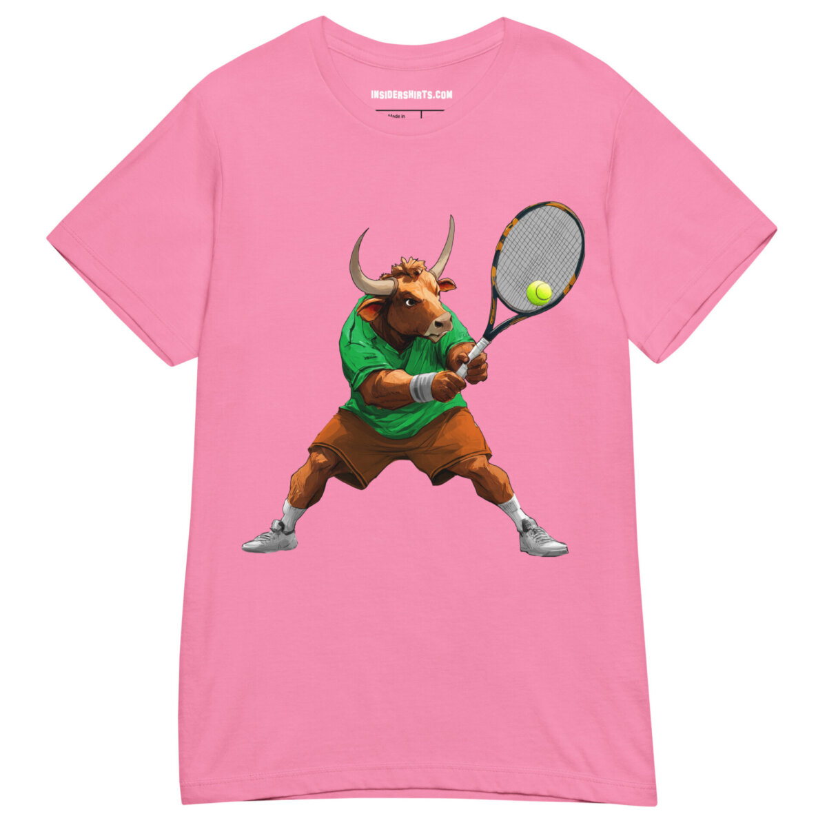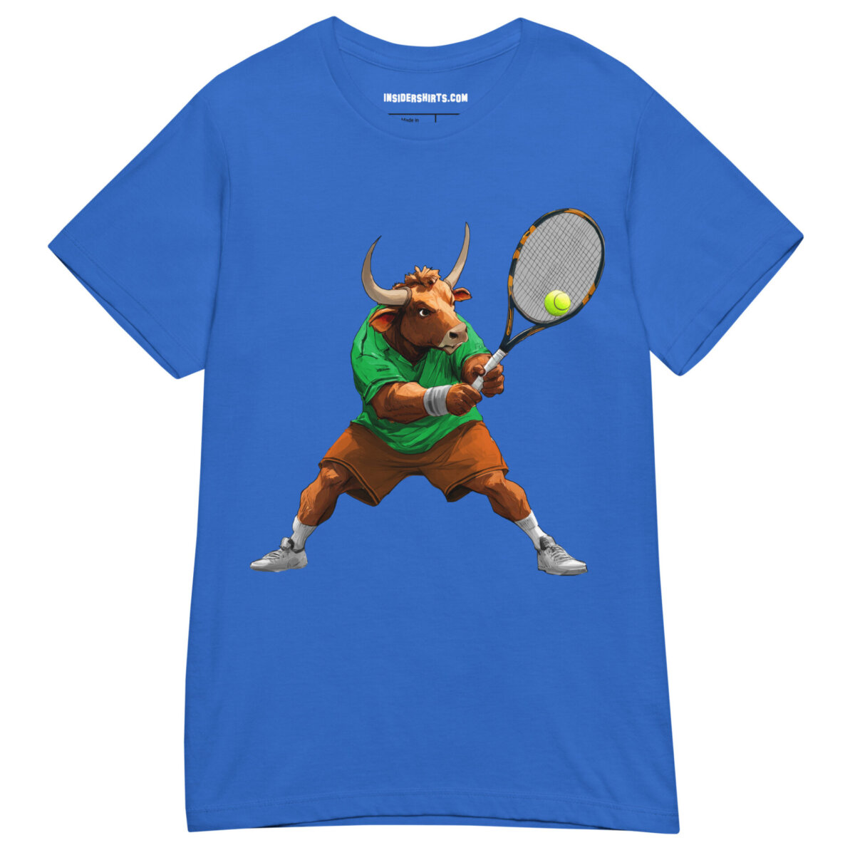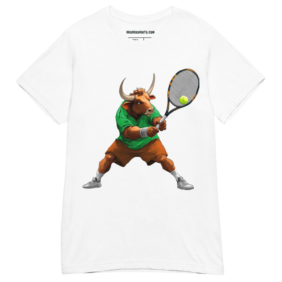 Wer sagt, dass man auf dem Platz nicht auch mal die Hörner zeigen darf? Mit diesem originellen Frauen T-Shirt und dem motivierten Stier beim Aufschlag beweist du jedem, dass sportlicher Ehrgeiz und Humor ein perfektes Team sind. Dieses leicht tailliert und locker sitzende T-Shirt schmiegt sich an deinen Körper an und sorgt ohne einzuengen für ein schmeichelhaftes Aussehen. Dank seinem weichen, leichten Stoff lässt es sich mit oder ohne Jacke tragen.
