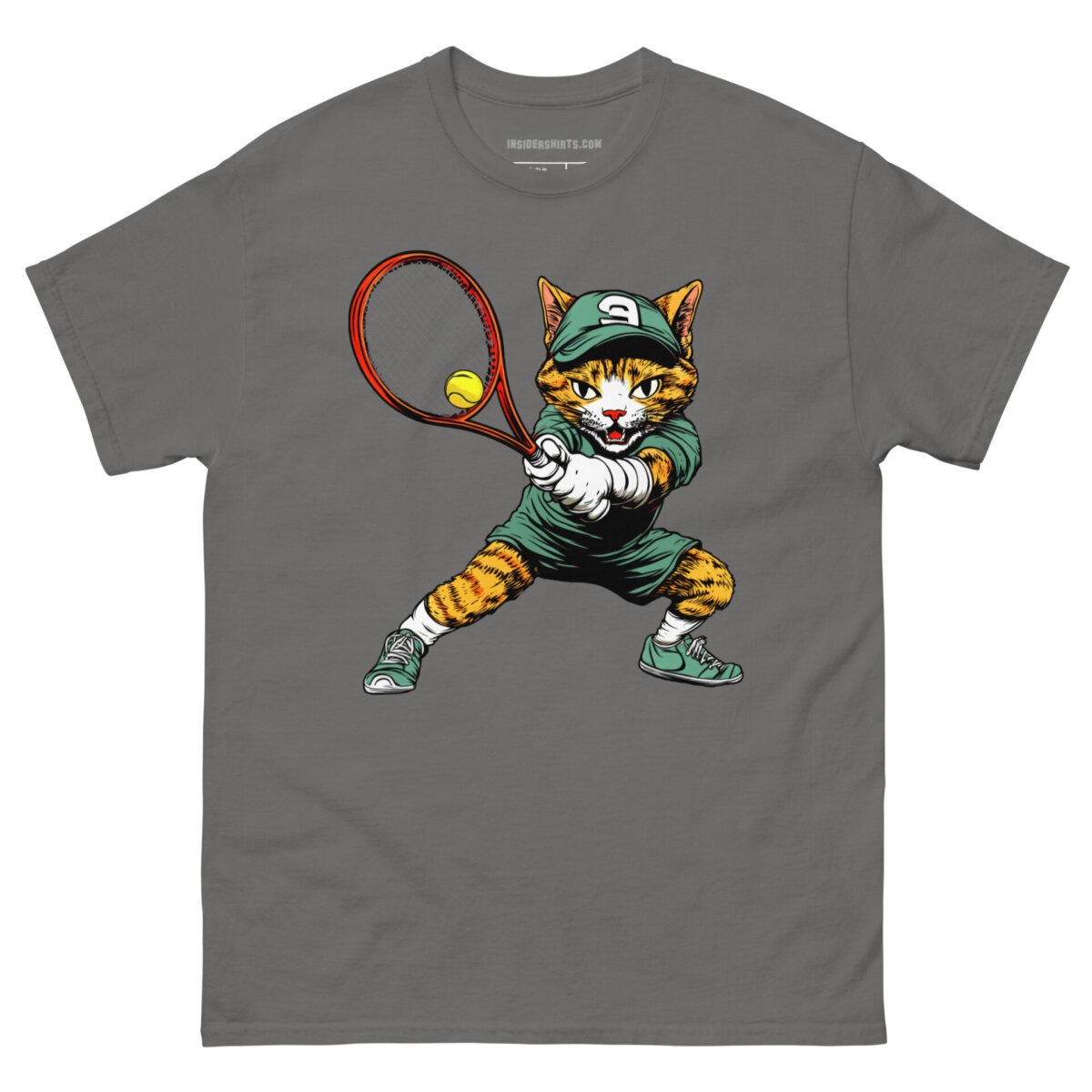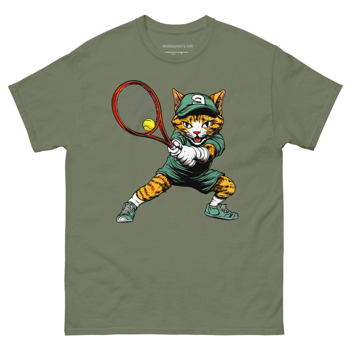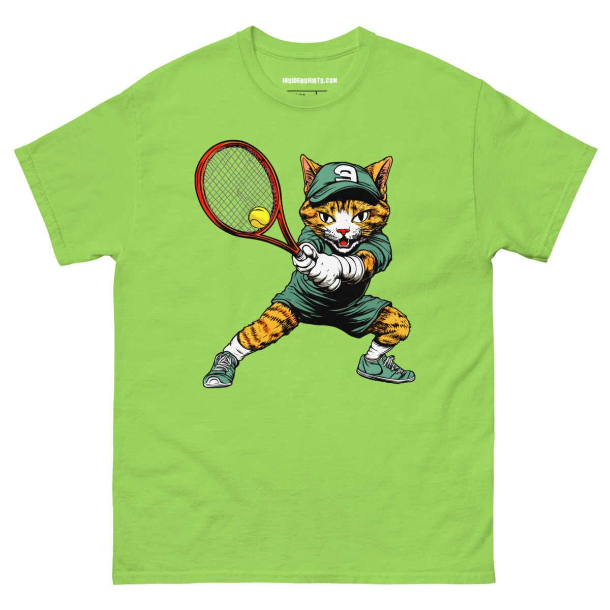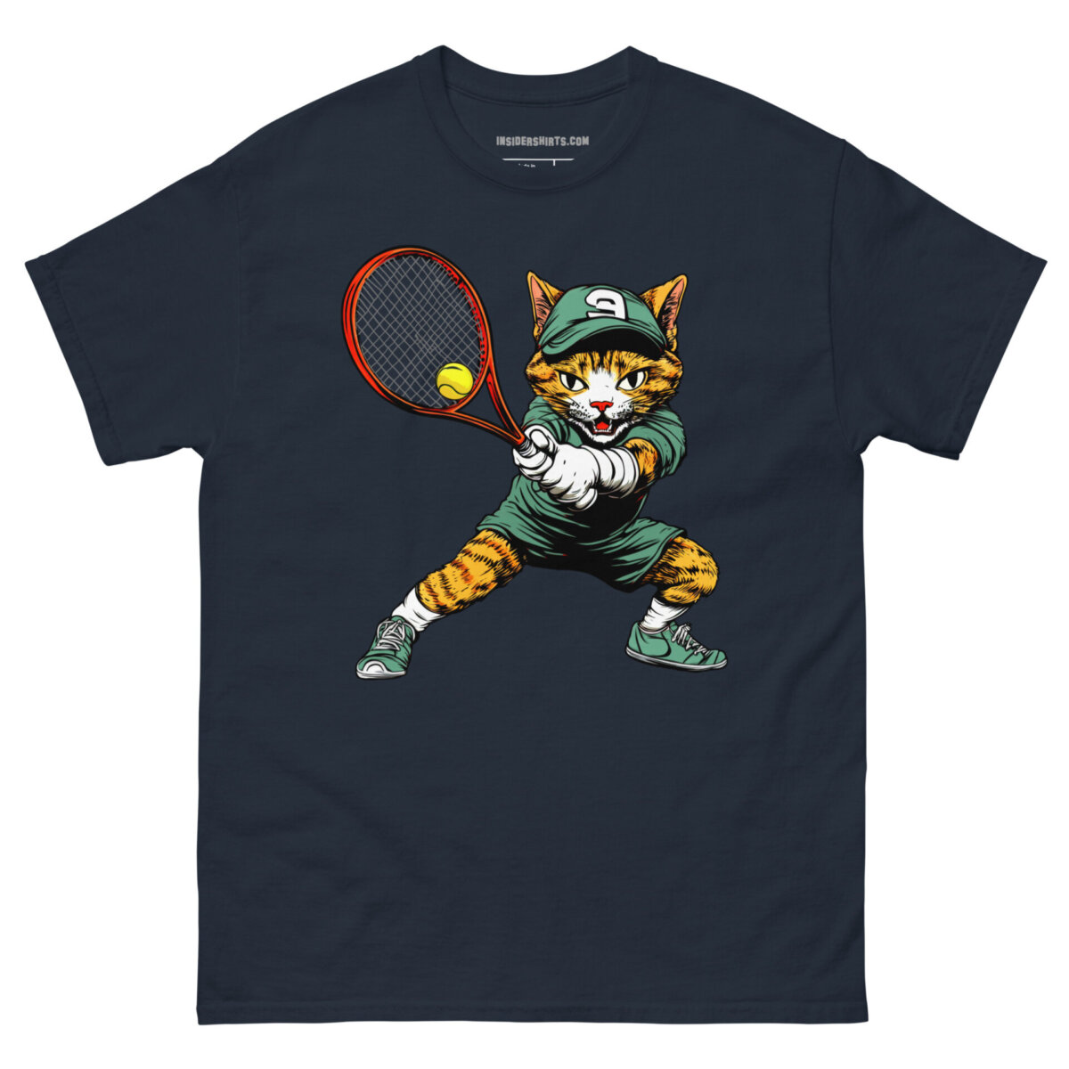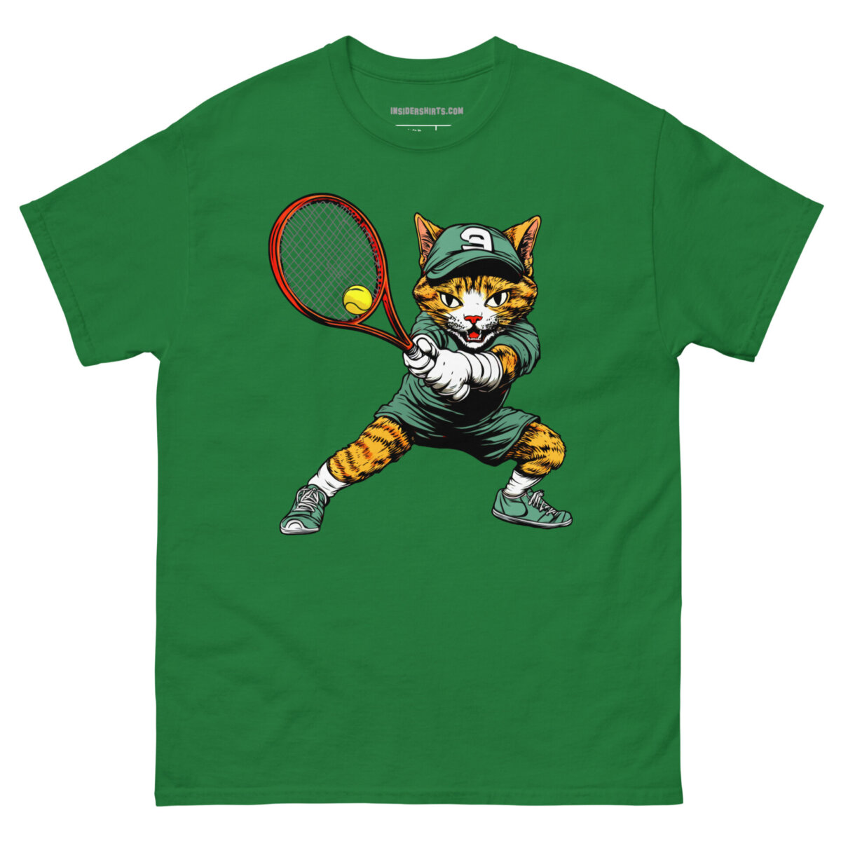 Sichere dir das stylische Männer T-Shirt mit der flinken Tennis-Katze – der perfekte Look für den Court und die Freizeit. Dieses coole Tennis Männer T-Shirt aus Baumwolle verleiht deinem Outfit einen stylischen und strukturierten Tennis Look – ganz ohne Aufwand. Es sitzt perfekt, bleibt formstabil und lässt sich ideal mit Jeans, Jacken oder in Tennis Streetwear Outfits kombinieren. Der auffällige, coole Tennis Katze Druck setzt ein klares Statement – ein Must-have für alle Männer, die es lässig und stilvoll mögen.